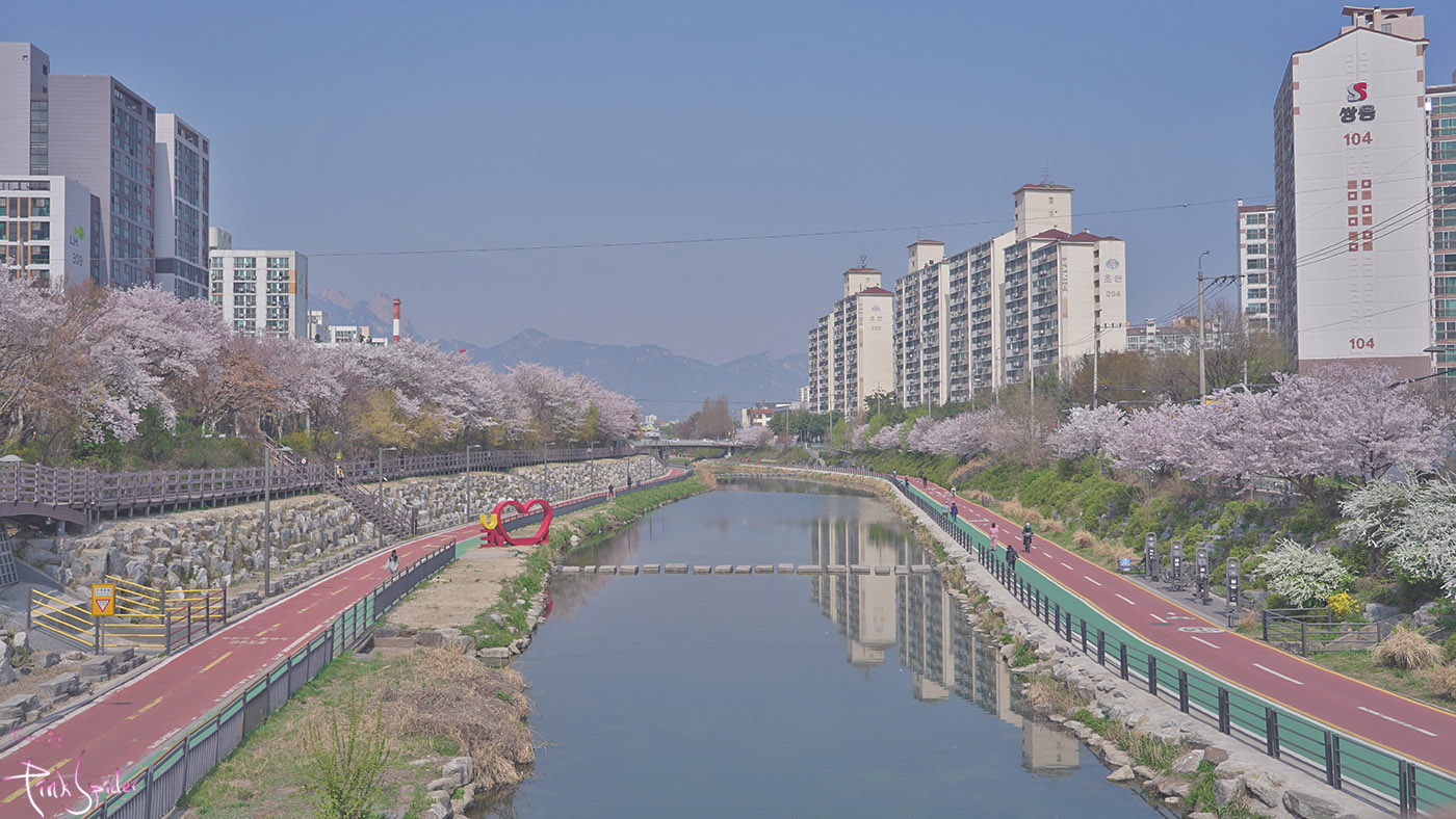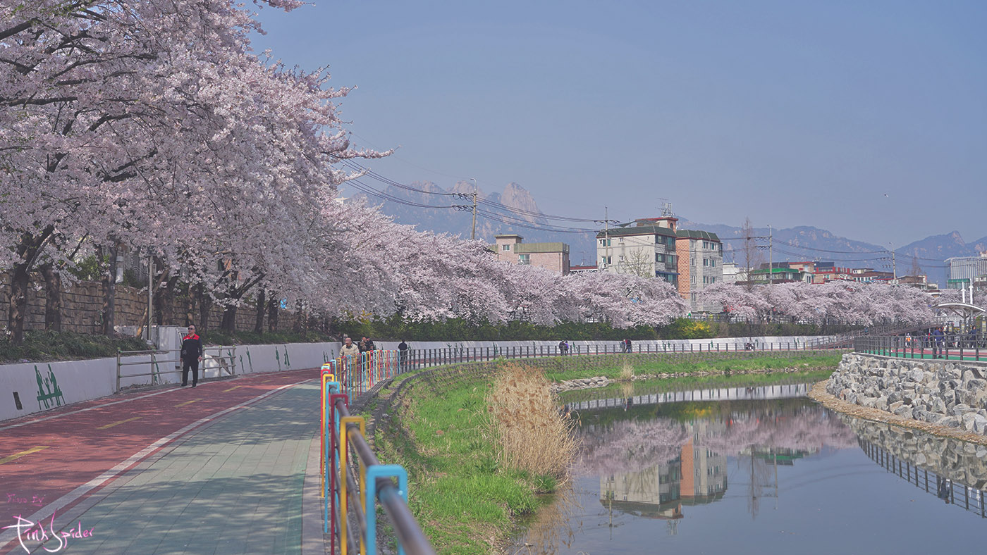 우이천 벚꽃길이 좋은 이유는 양쪽에 벚꽃이 잘 배치해 있어서 그런 것 같다.