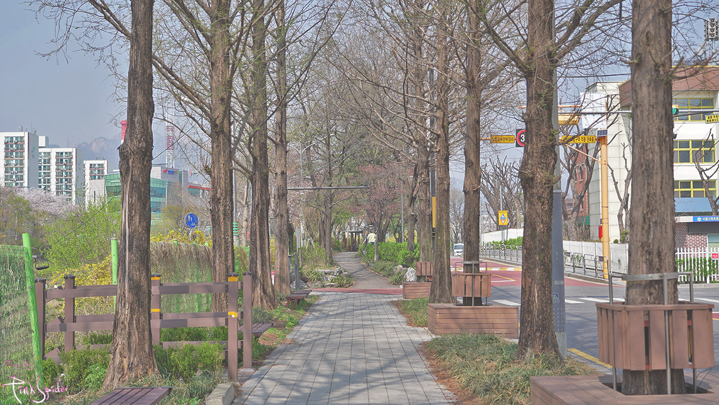 우이천에서 내려가는 방향은 우이제2교에서부터 신창교까지가 벚꽃나무가 길게 줄지어 있어서
