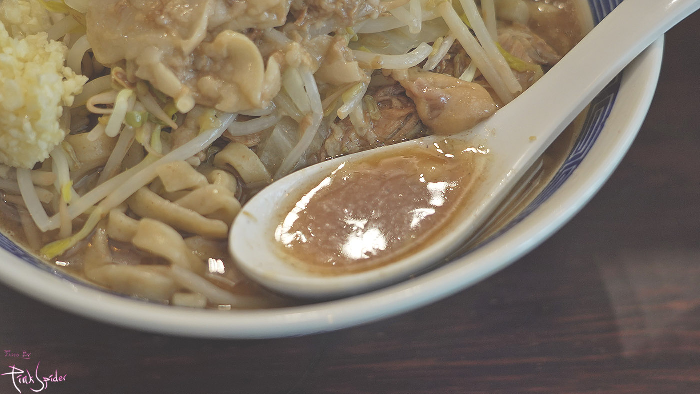 아마도 다소 헤비한 라멘에 속하는 지로계 라멘이기 때문에 국물이 헤비할 수 밖에 없는데