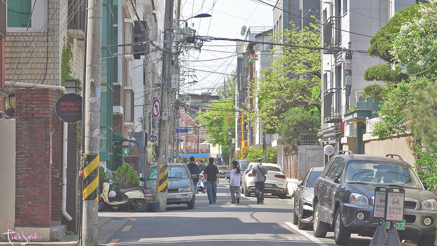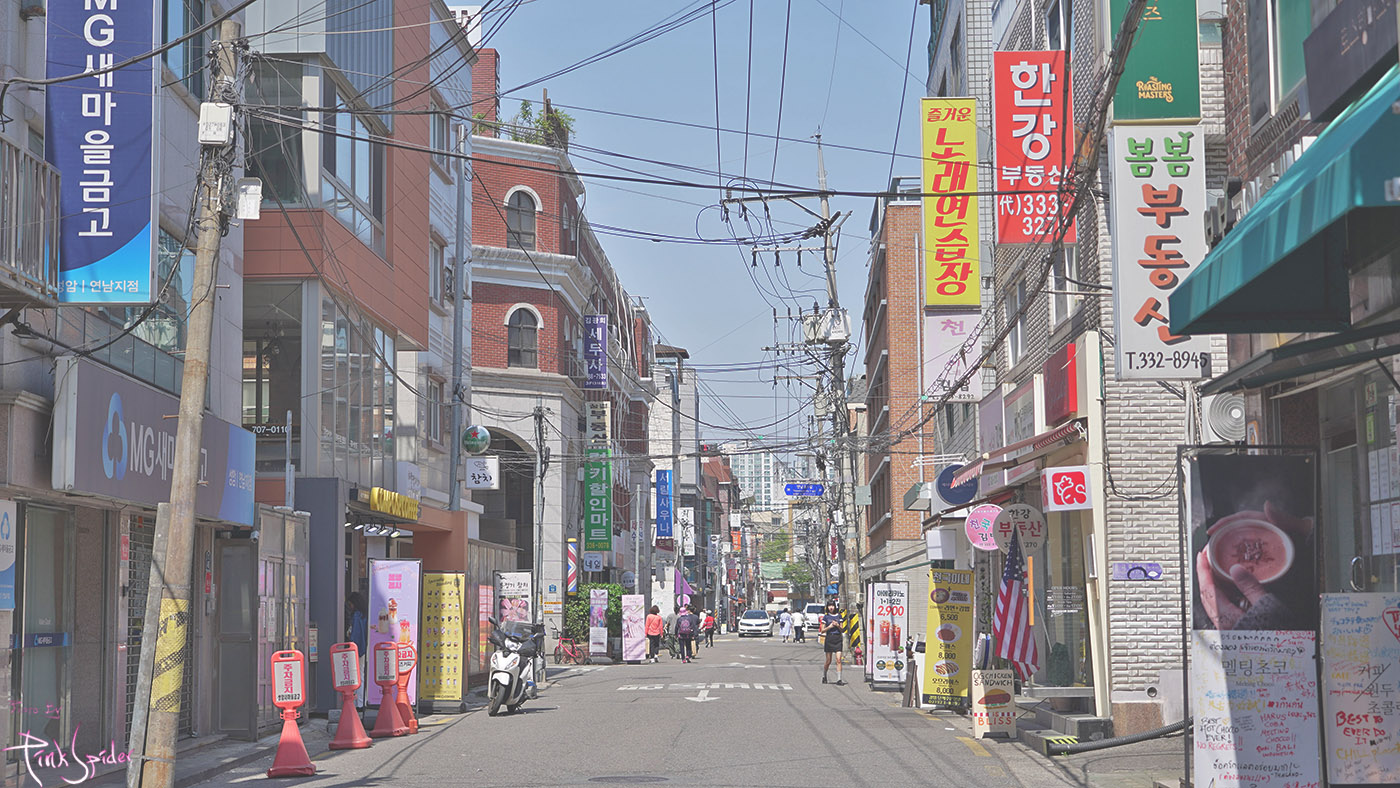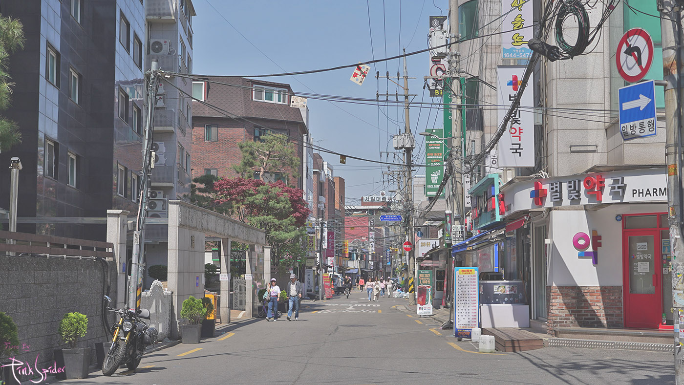 이런 중심가에 번화가와 주택가의 그라데이션 같은 경계선 풍경이 참 이색적인 것 같다.
