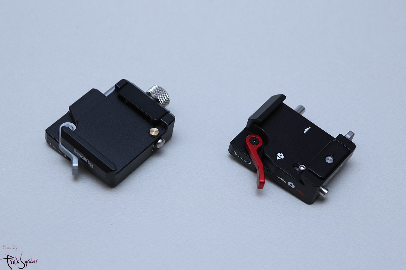 왼쪽이 스몰리그에서 구입한 마운트 플레이트 SR4195이고 오른쪽이 DJI RS3 MINI에 기본으로 제공되는 플레이트