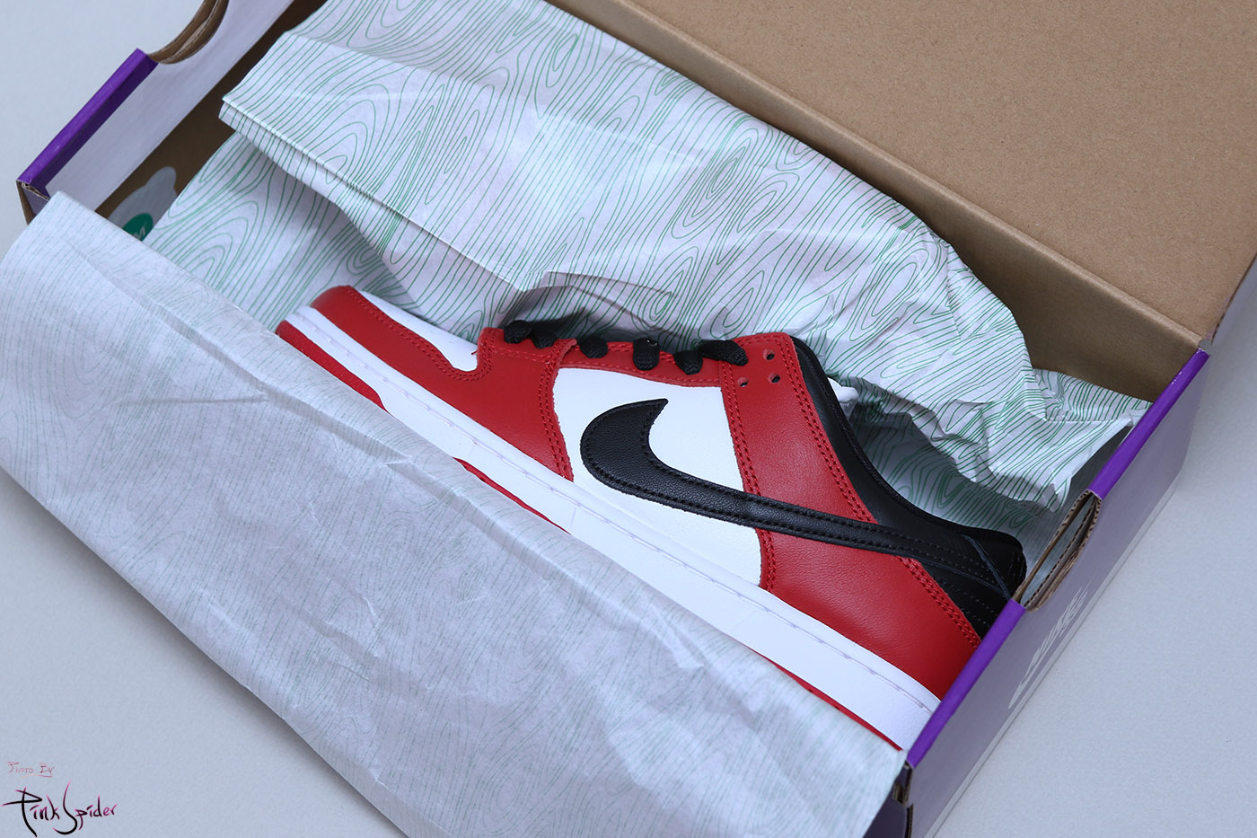속지를 걷어내면 시카고 특유의 레드컬러의 자태를 뿜어내는 SB 덩크 로우가 보임~