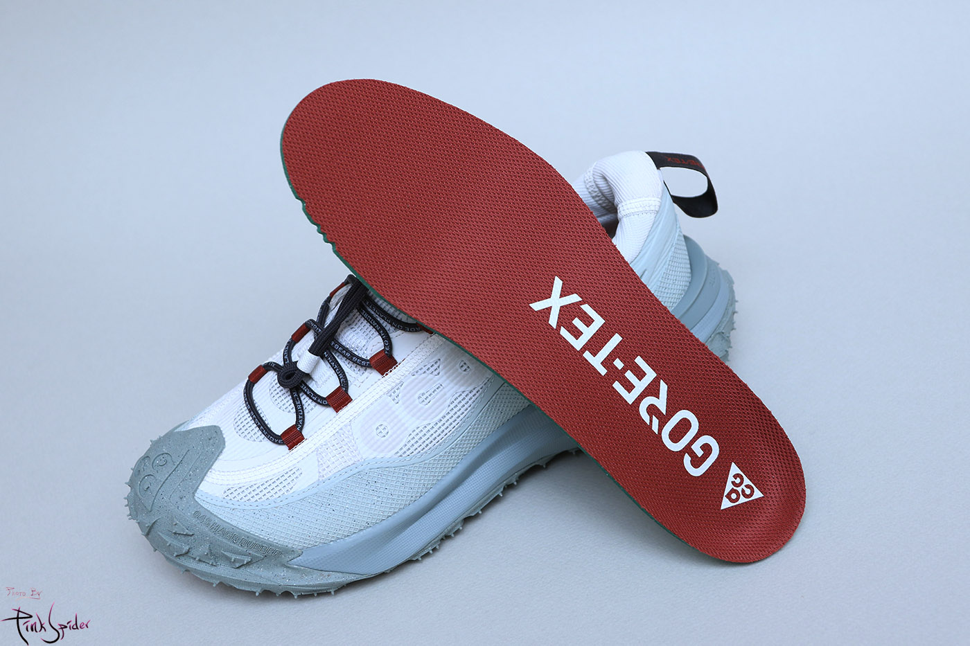 깔창은 버건디 컬러에 고어텍스 레터링이 프린팅 되어 있음