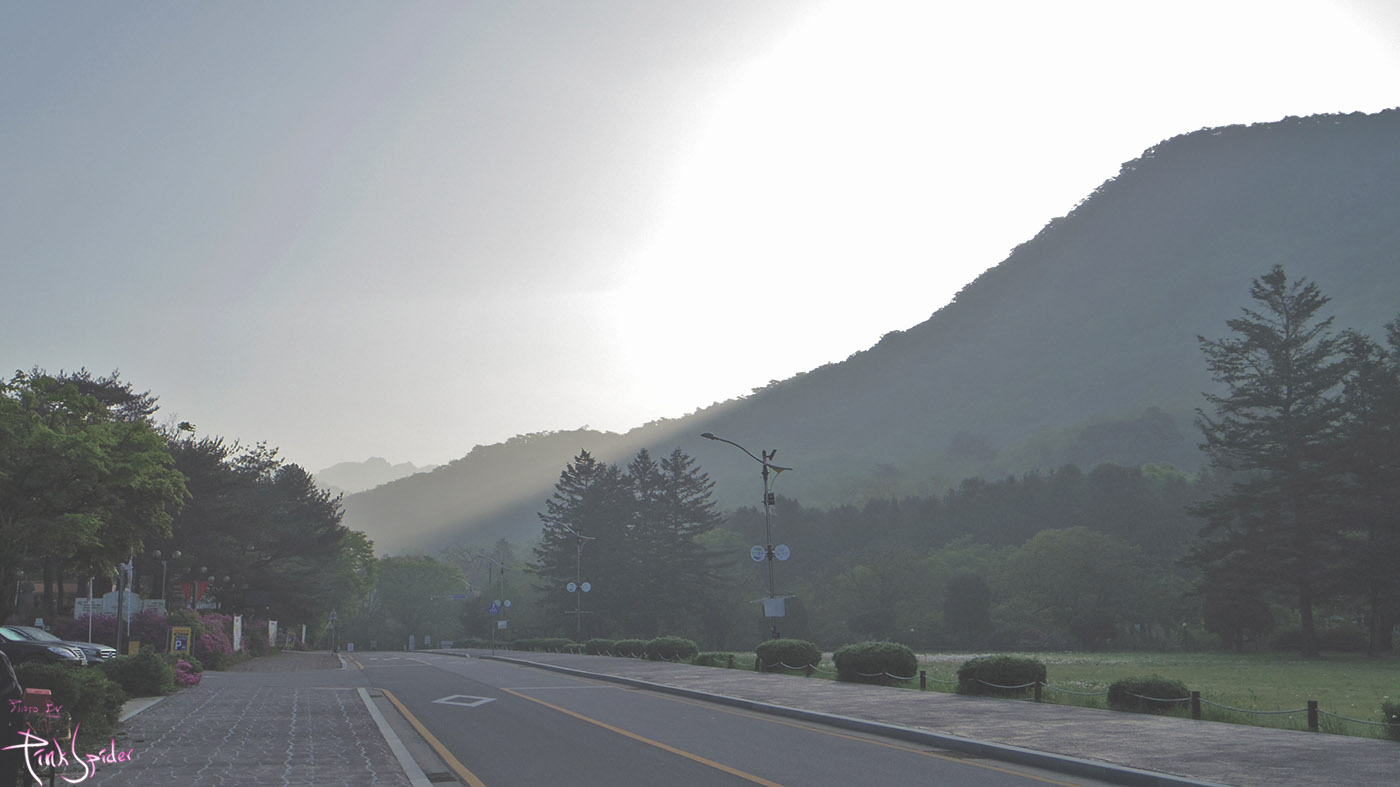 날씨는 맑았고 마침 해가 방긋 인사를 하는 시간이라서