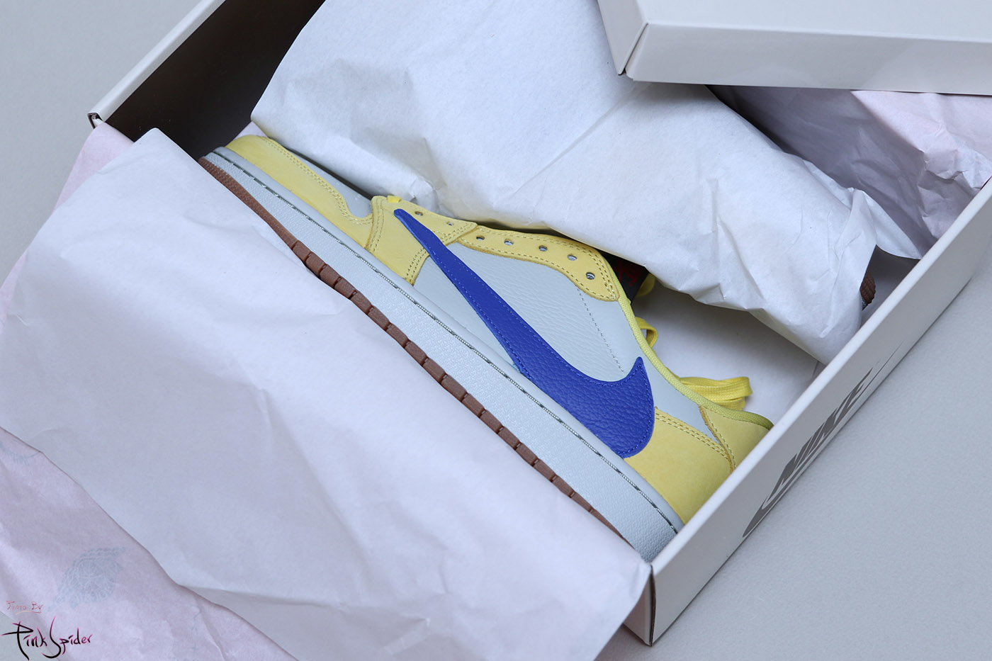 안에 일반 속지를 걷어내면 이렇게 화사하고 가벼워 보이는 느낌의 조던1 로우 스캇 카나리가 들어 있음
