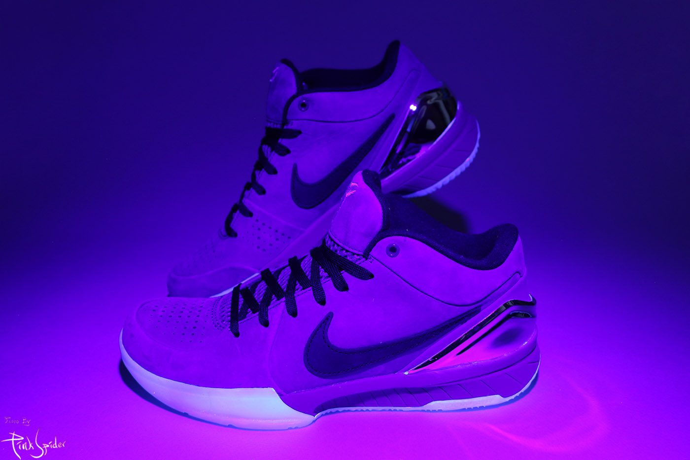 아웃솔이 야광으로 보이고 미드솔 뒷부분이 자주색으로 보이는 것 외에
