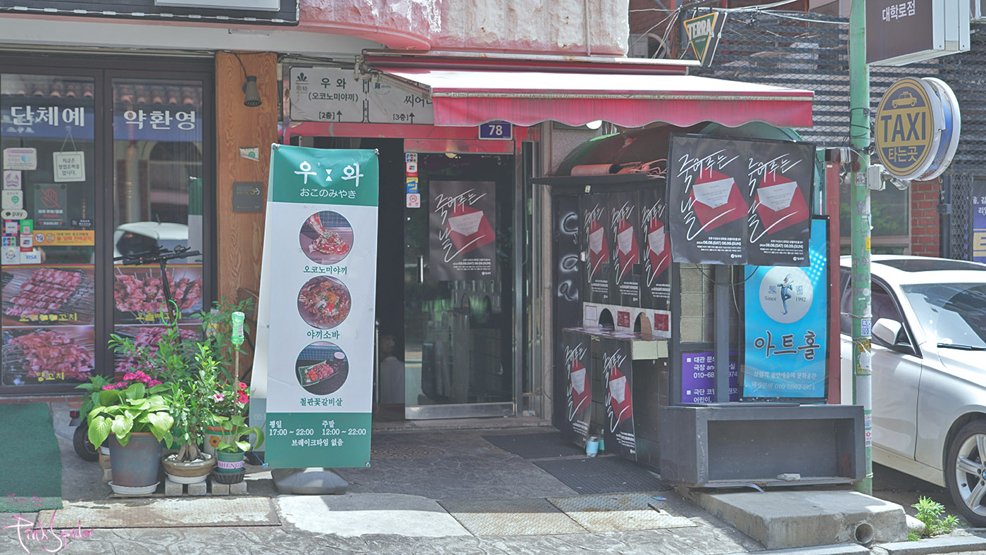 도착한 곳은 오코노미야끼랑 야끼소바를 메인으로 하는 우와 대학로점~
