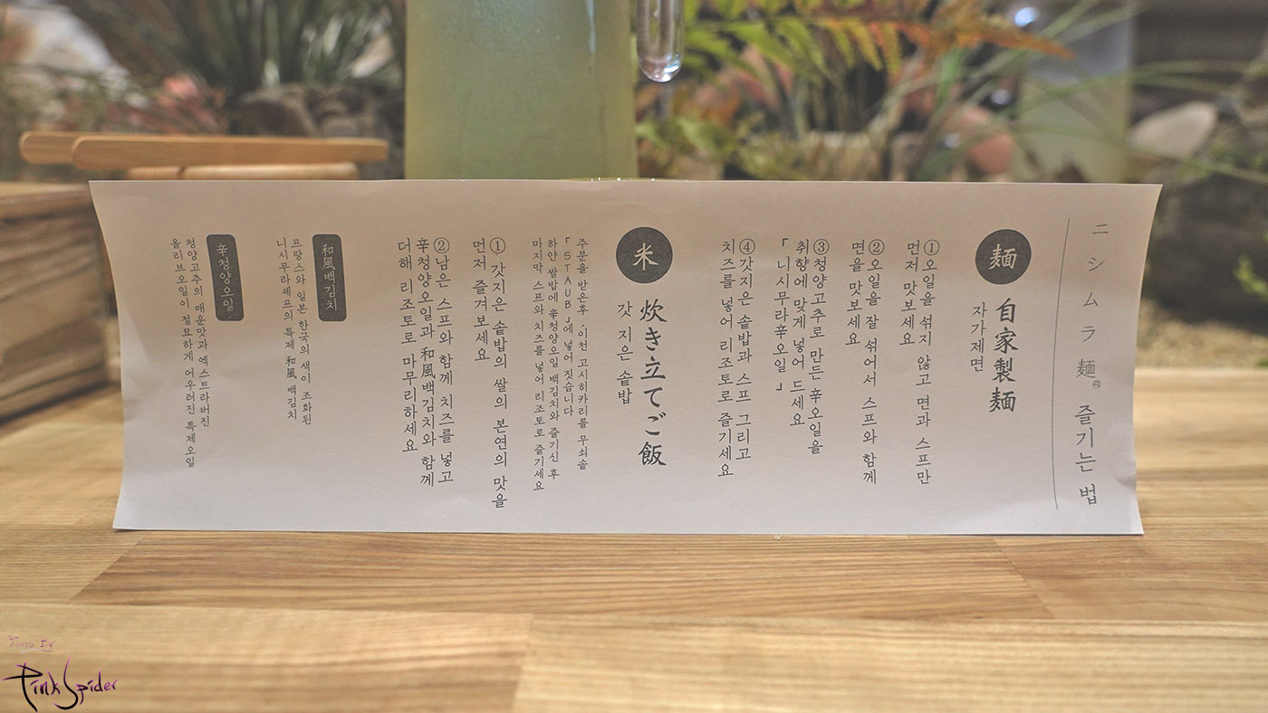 얼추 10분 안 되게 걸은 것 같다. 입구에 유난히 들어오는 일본어 니시무라멘(ニシムラ麺)