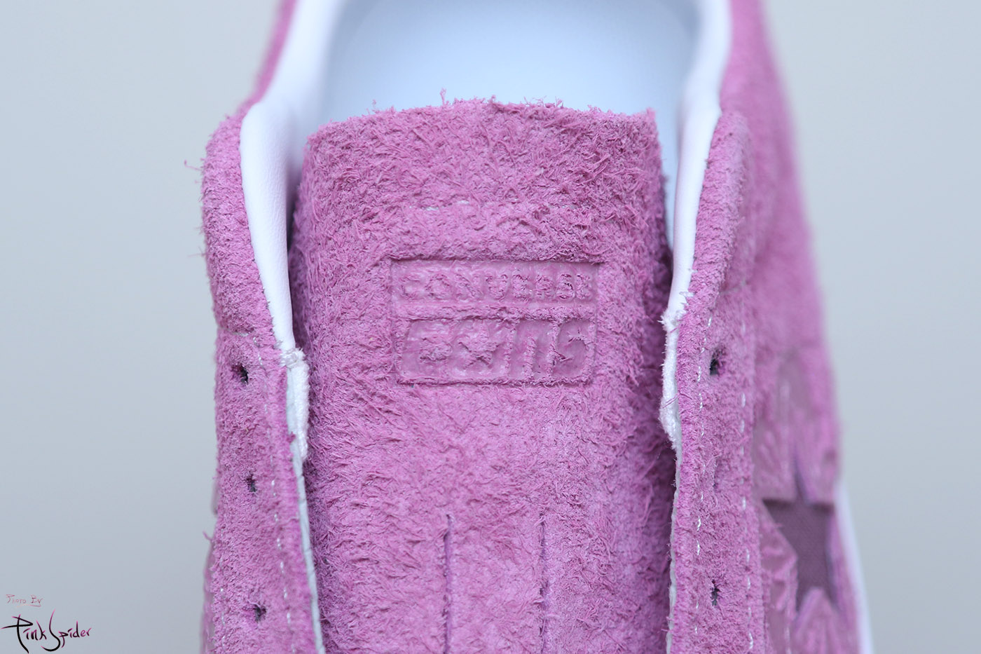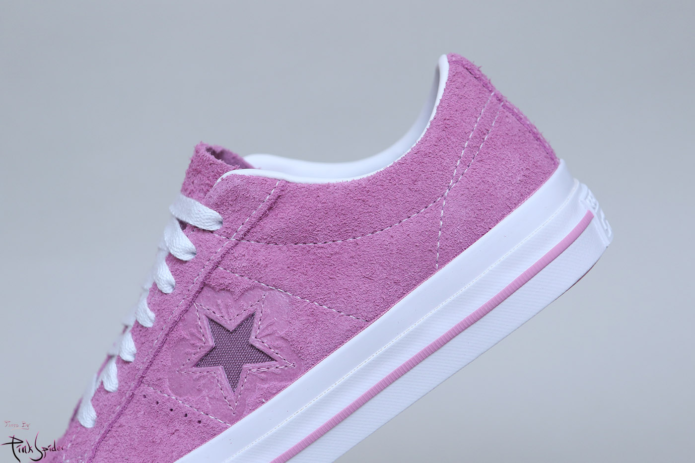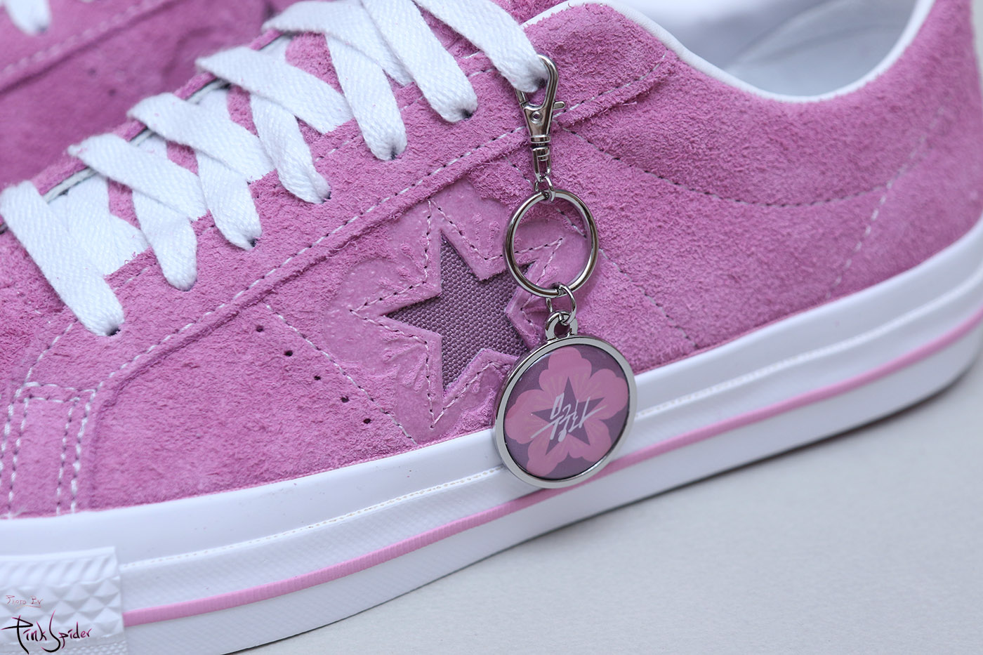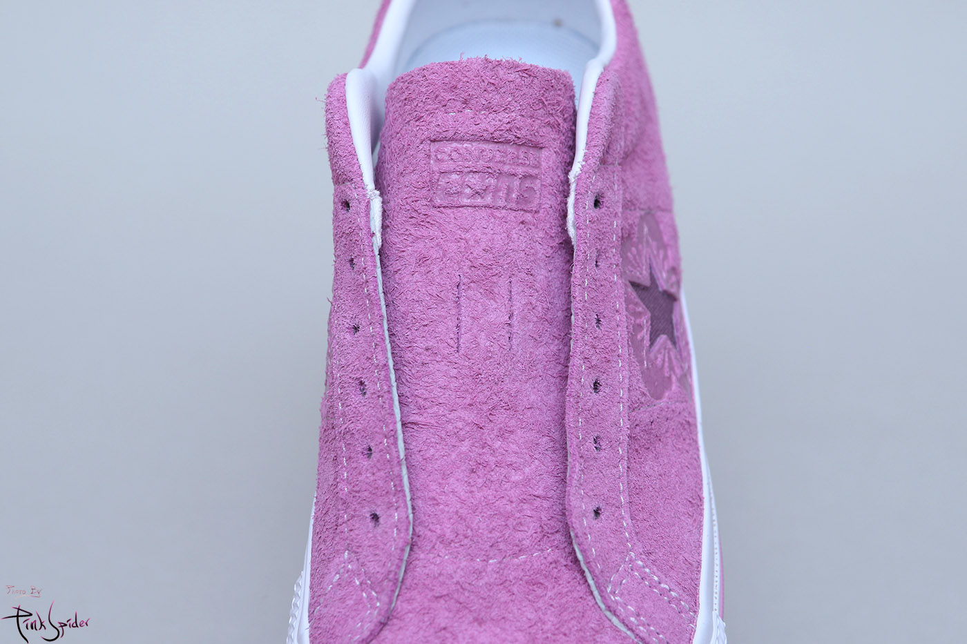 그래서 컨버스 원스타를 베이스로 어퍼는 라이트 오키드 컬러에 재질은 스웨이드 재질로 했고