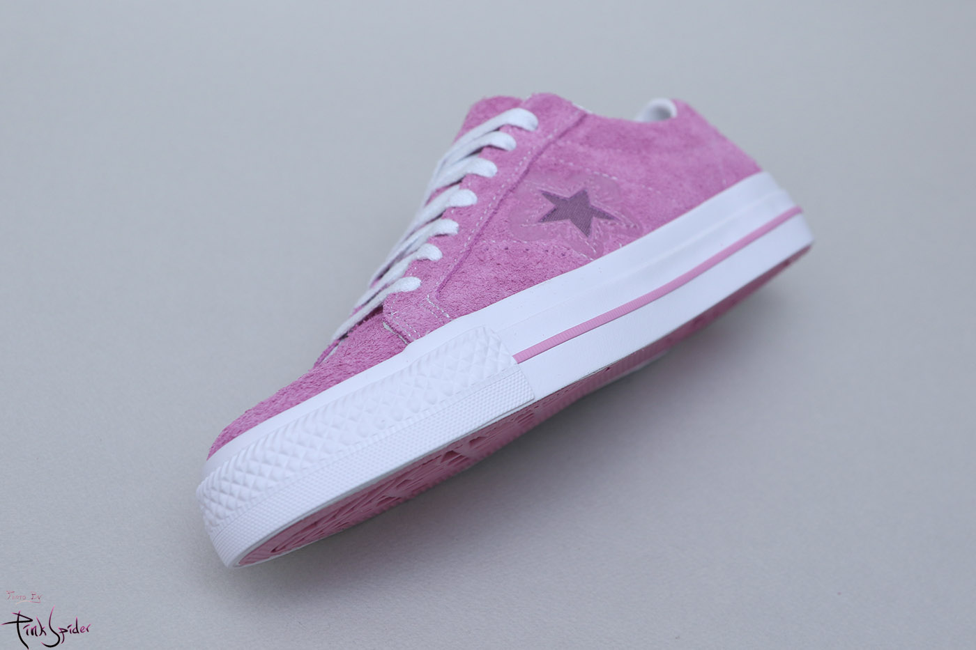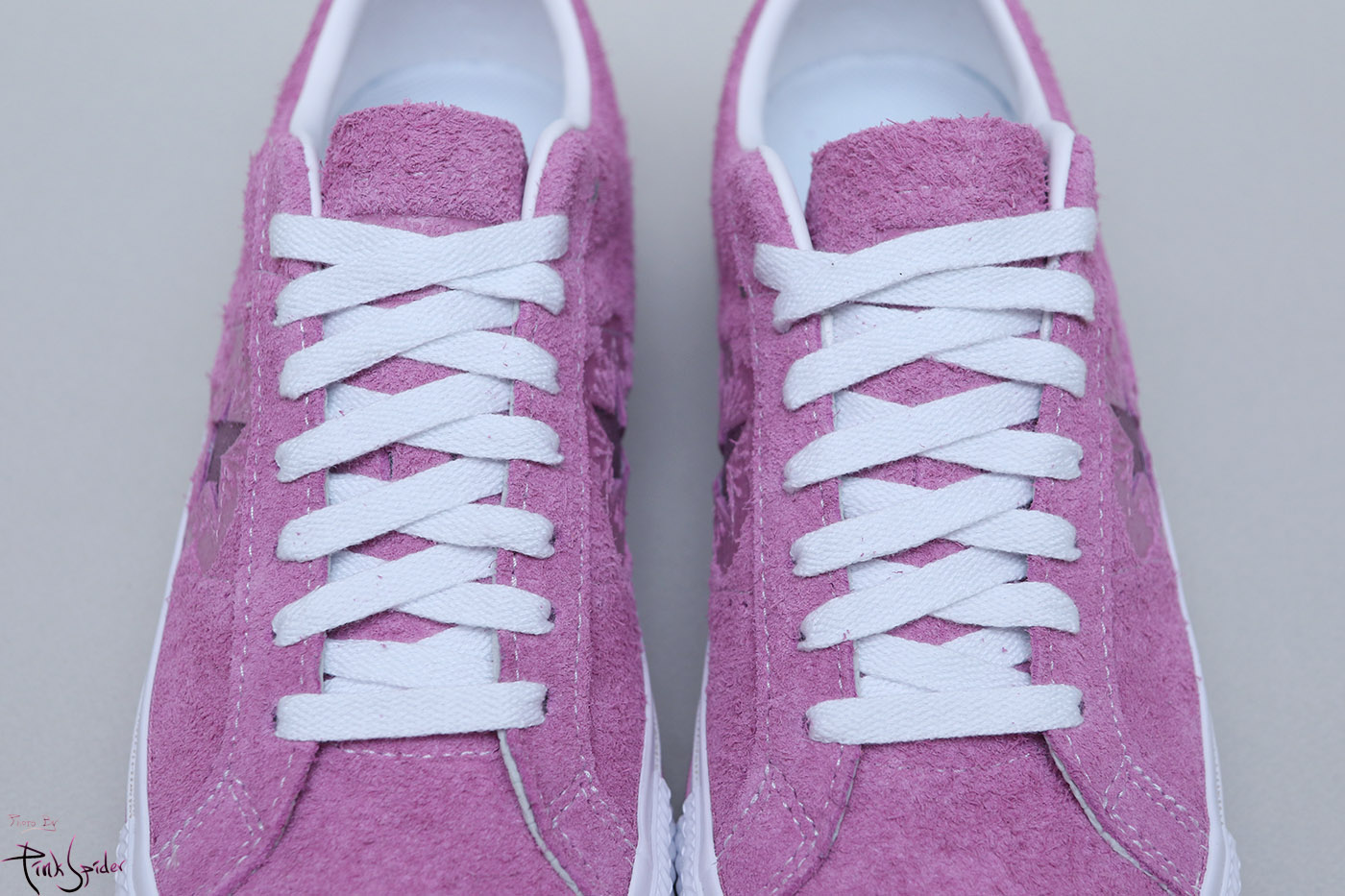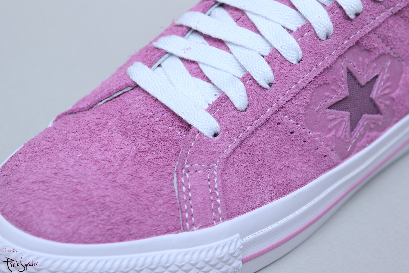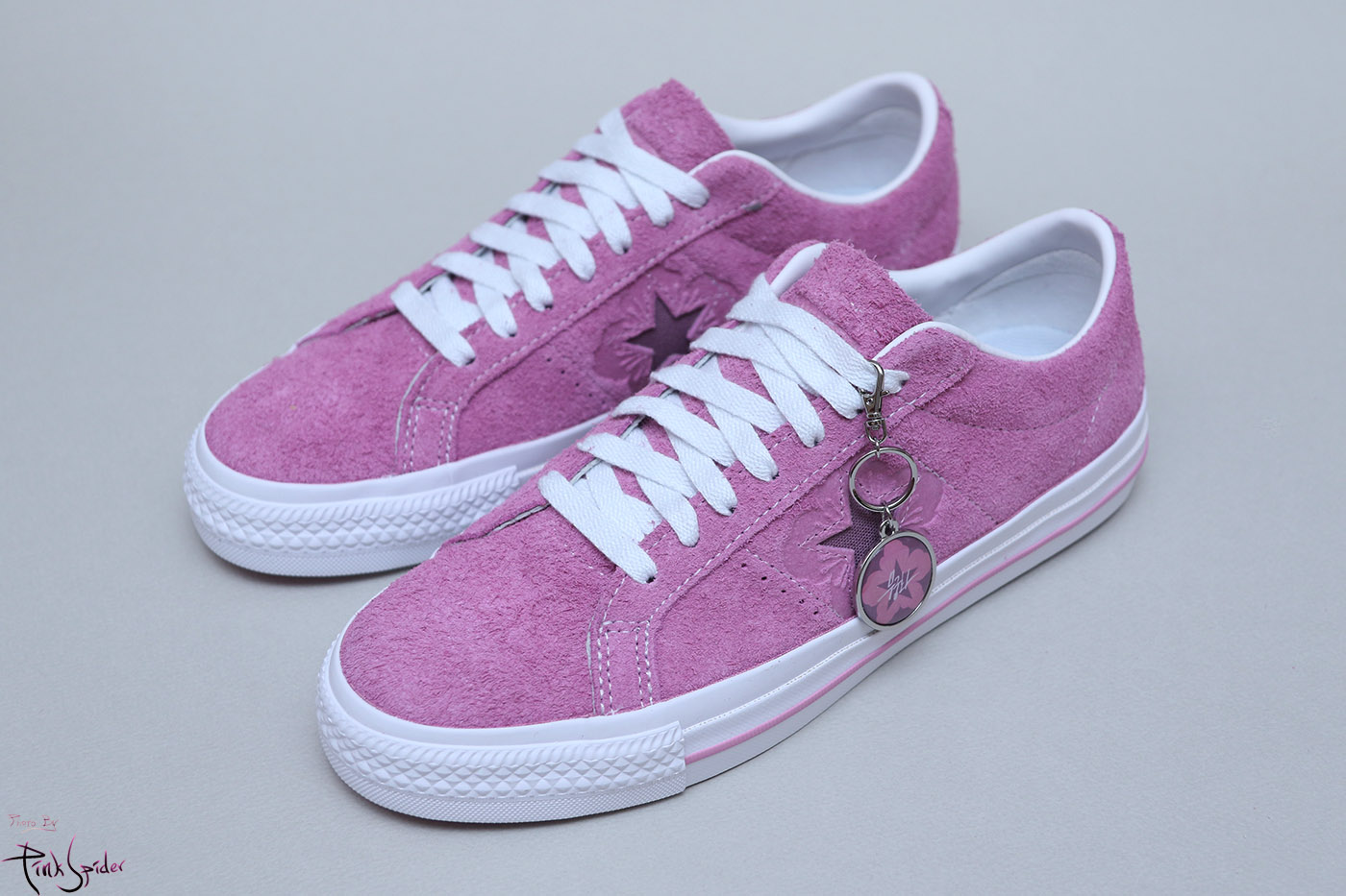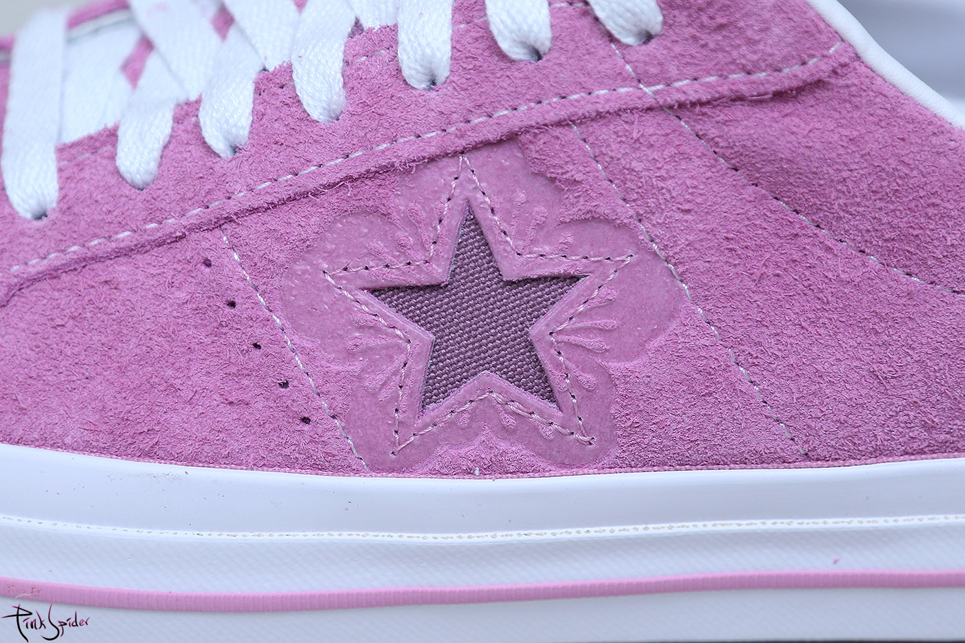 그래서 컨버스 원스타를 베이스로 어퍼는 라이트 오키드 컬러에 재질은 스웨이드 재질로 했고