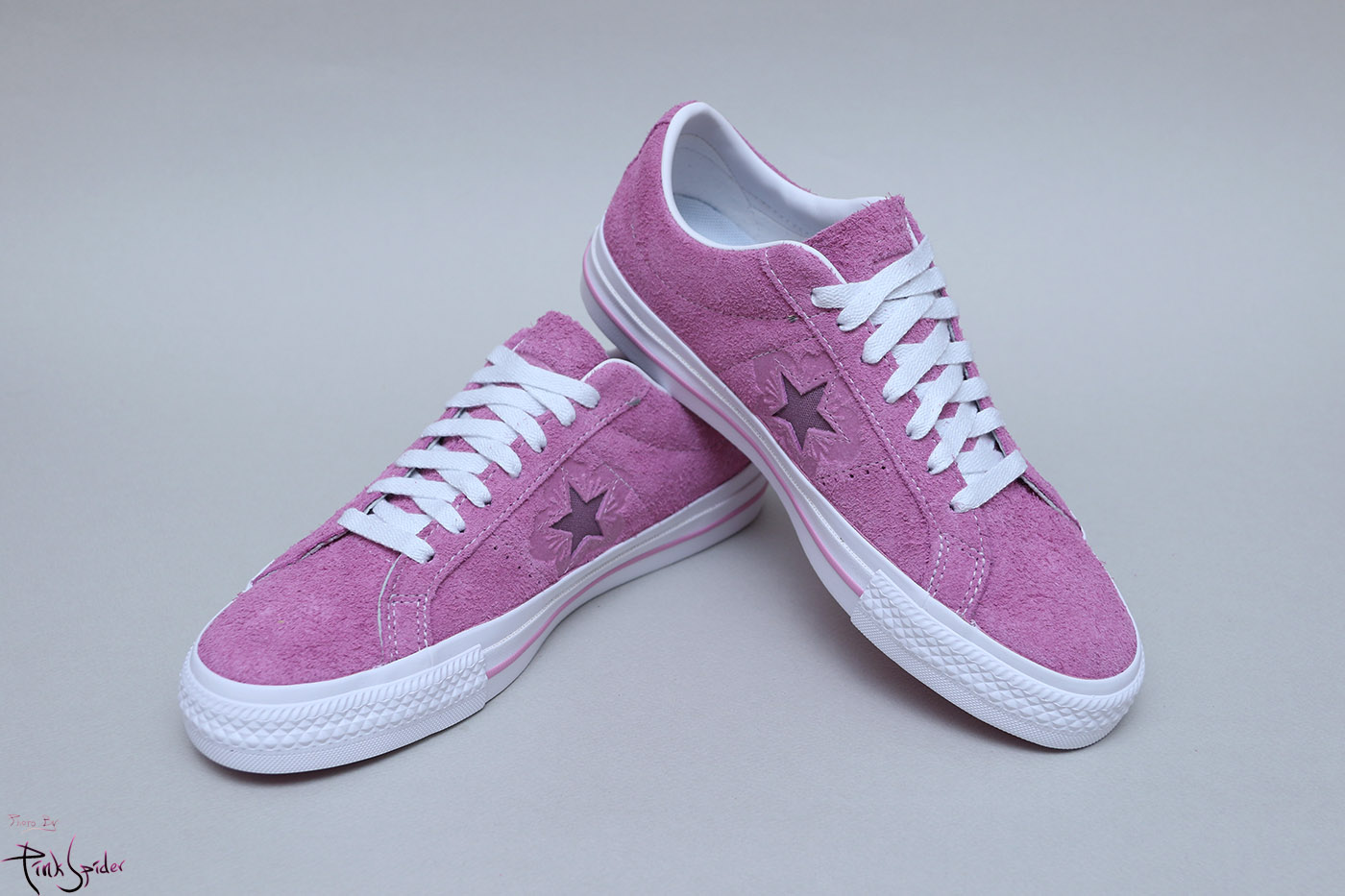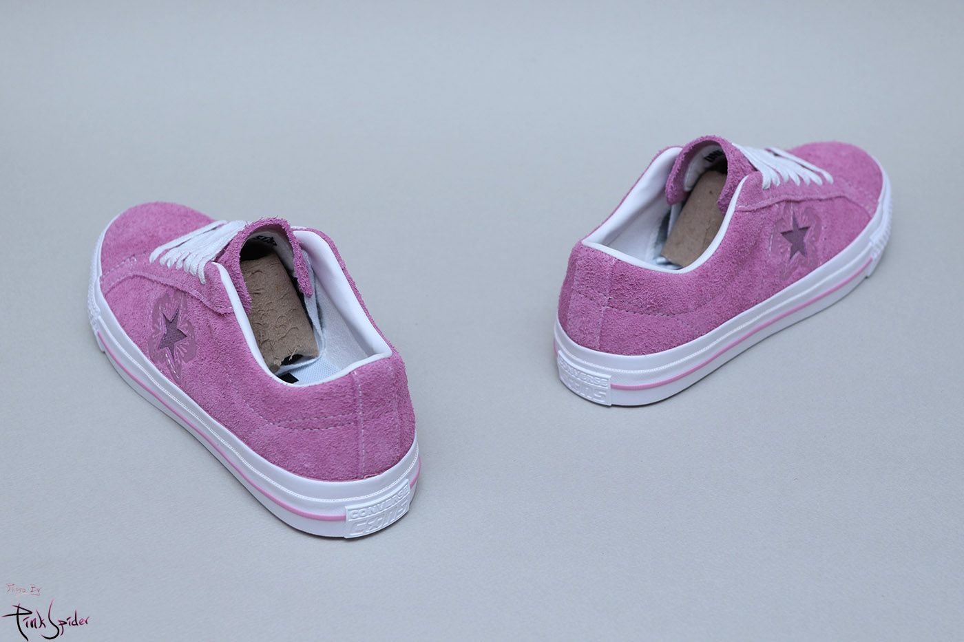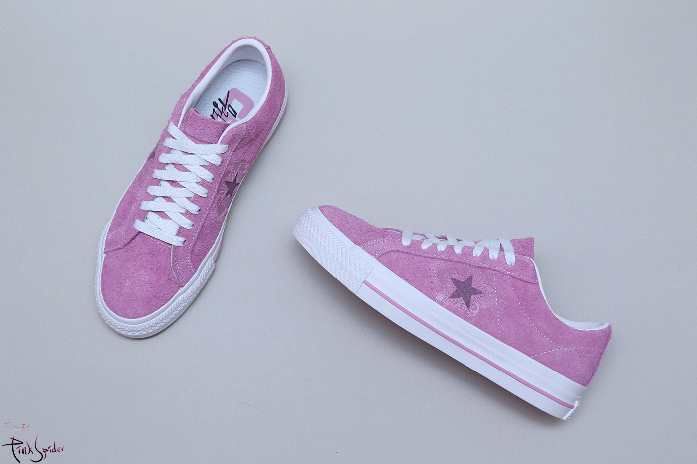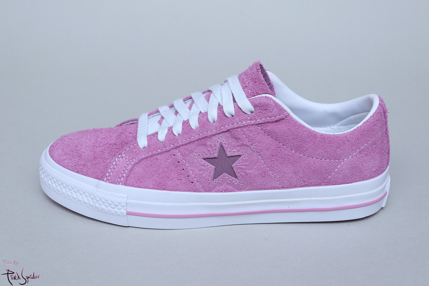 그래서 컨버스 원스타를 베이스로 어퍼는 라이트 오키드 컬러에 재질은 스웨이드 재질로 했고