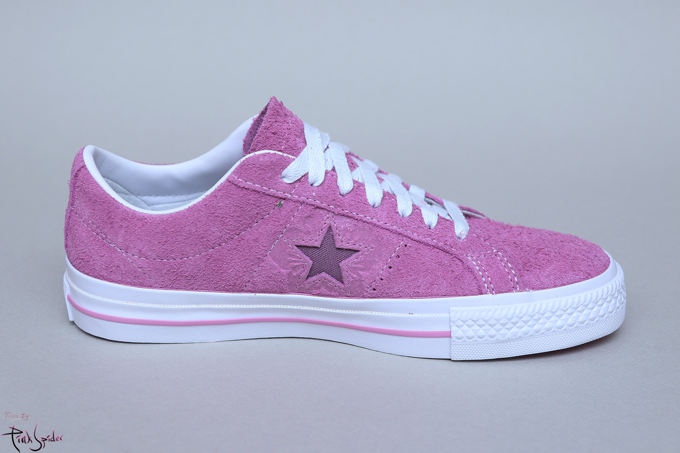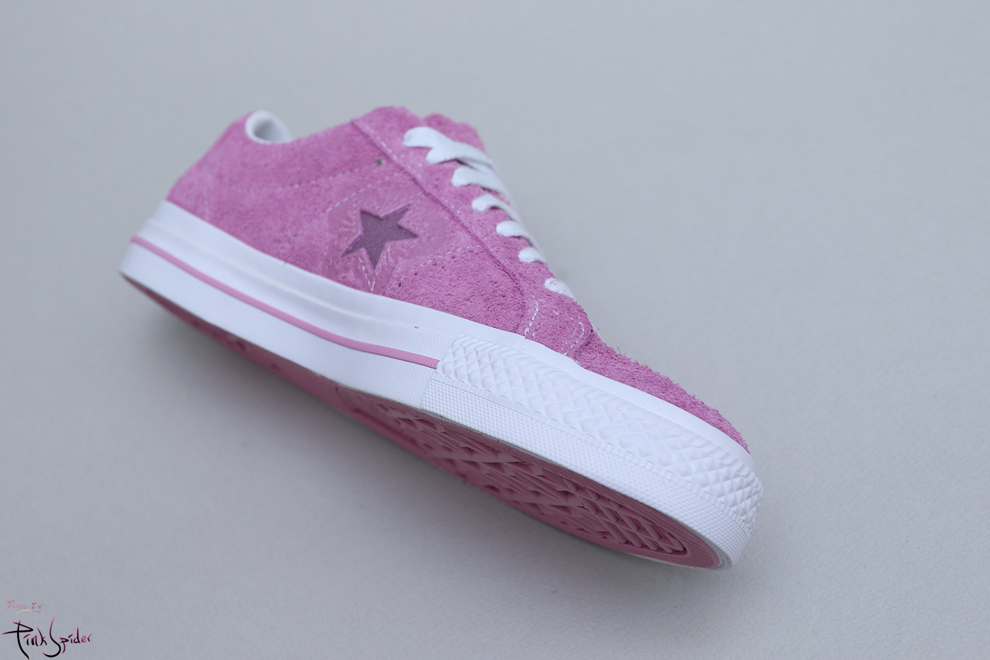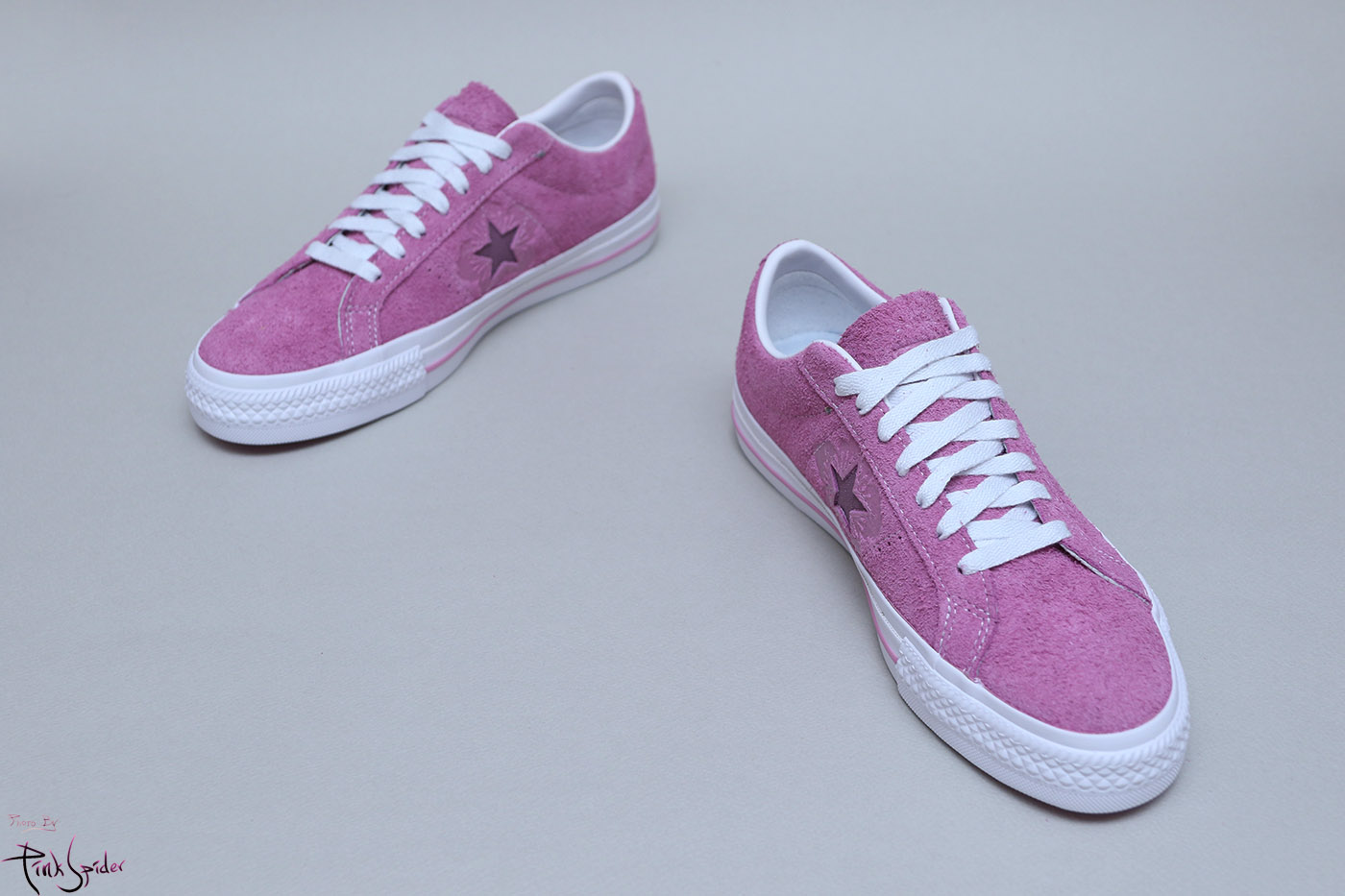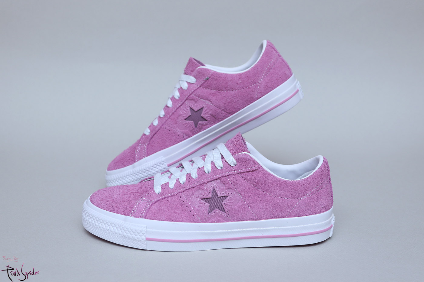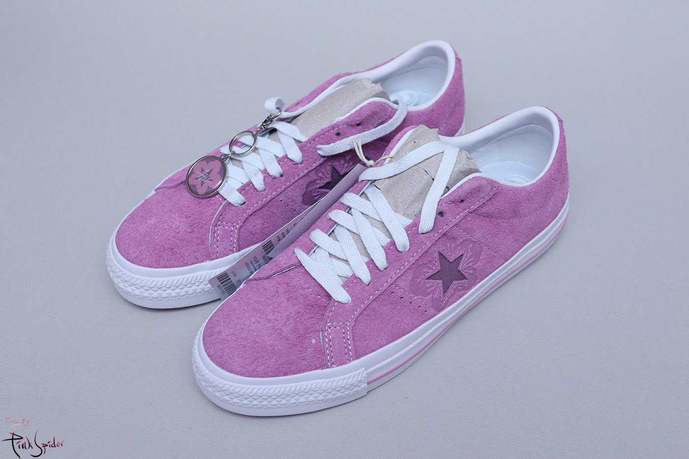 그래서 컨버스 원스타를 베이스로 어퍼는 라이트 오키드 컬러에 재질은 스웨이드 재질로 했고