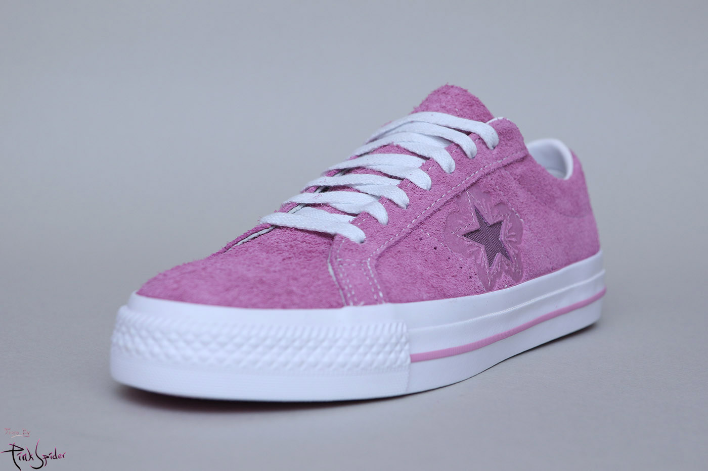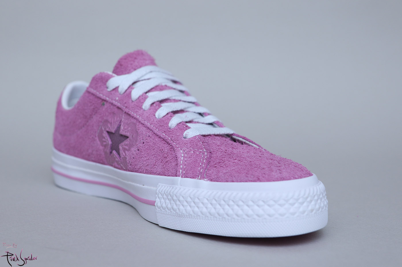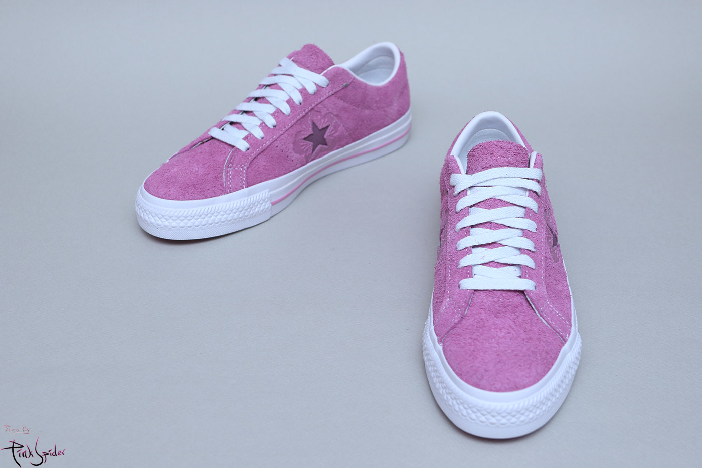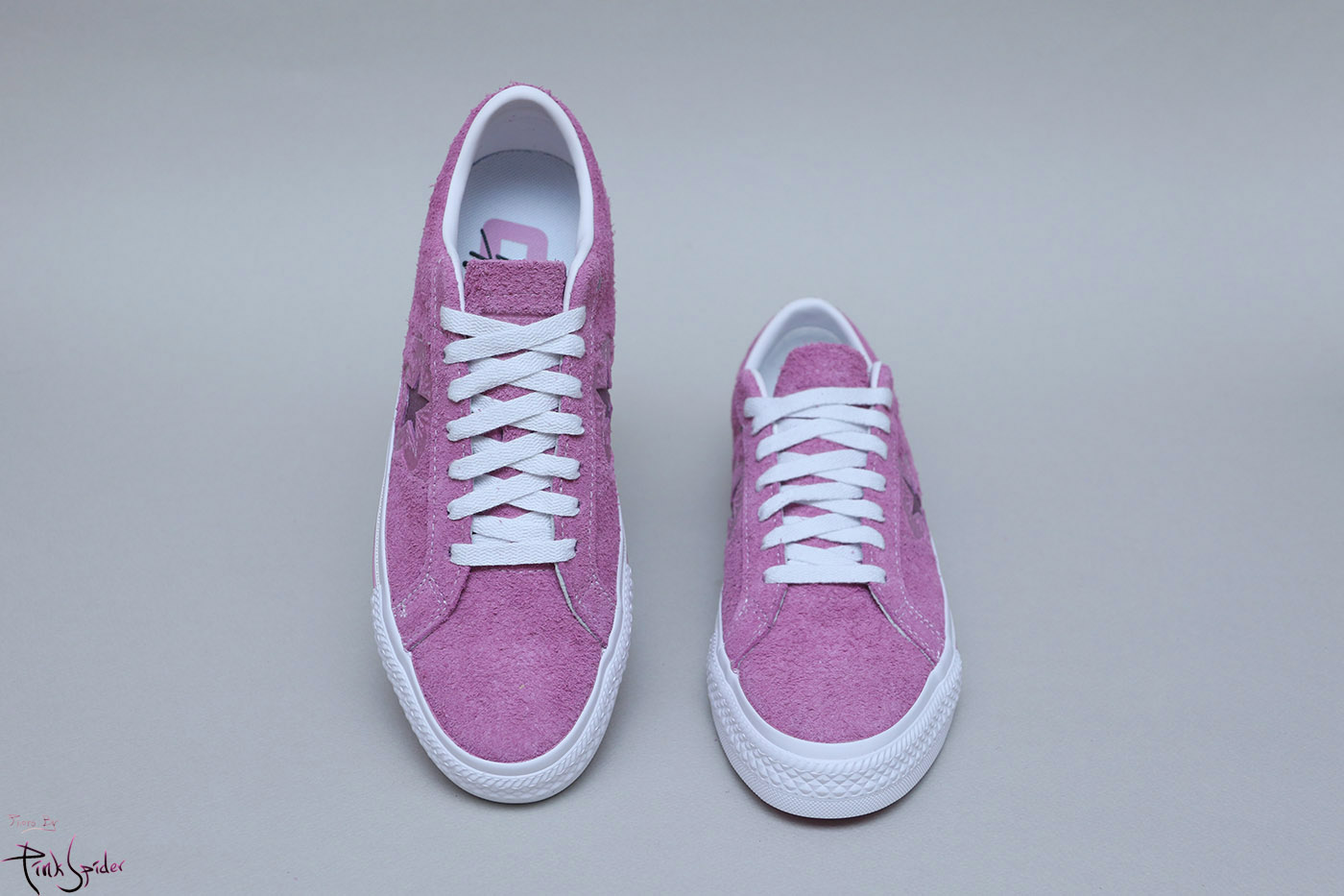 그래서 컨버스 원스타를 베이스로 어퍼는 라이트 오키드 컬러에 재질은 스웨이드 재질로 했고
