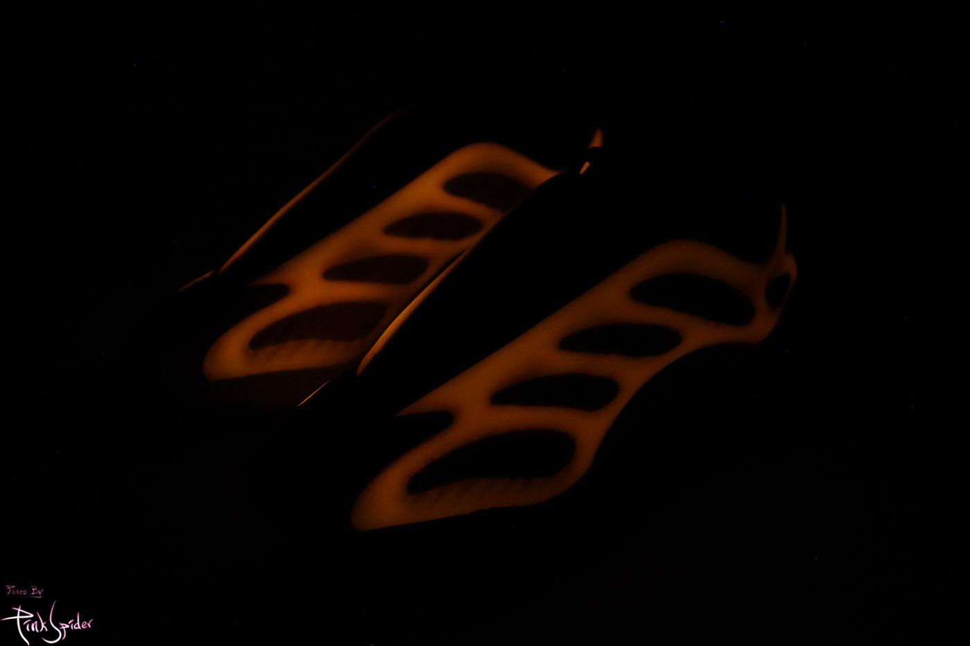 모노 사플라워도 야광기능이 들어가 있는데 컬러는 옐로우 계열 운동화답게 오렌지 야광이다~