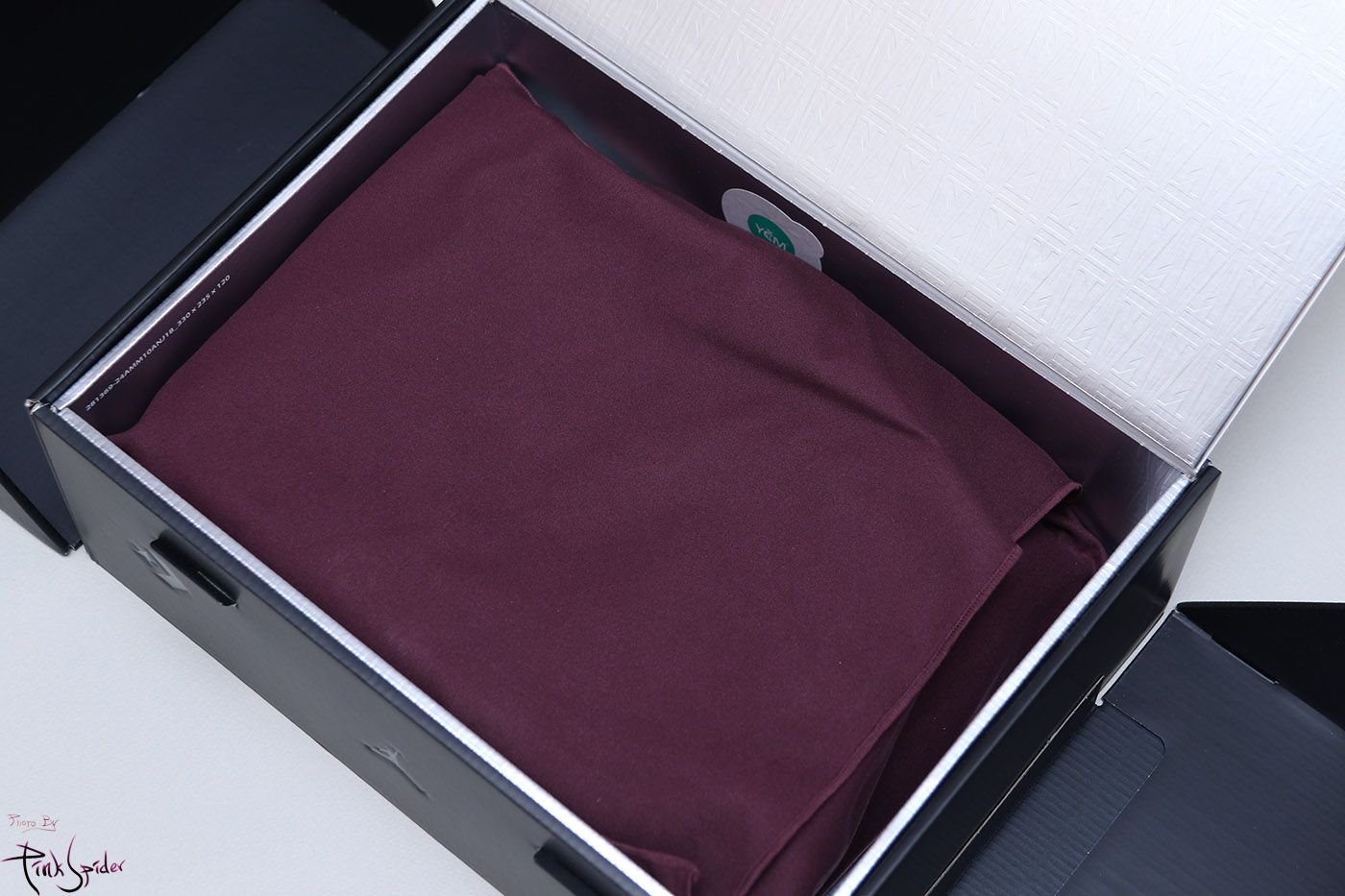로고가 새겨진 박스를 열면 마니에르 특유의 자색컬러 스웨이드로 덮혀있음
