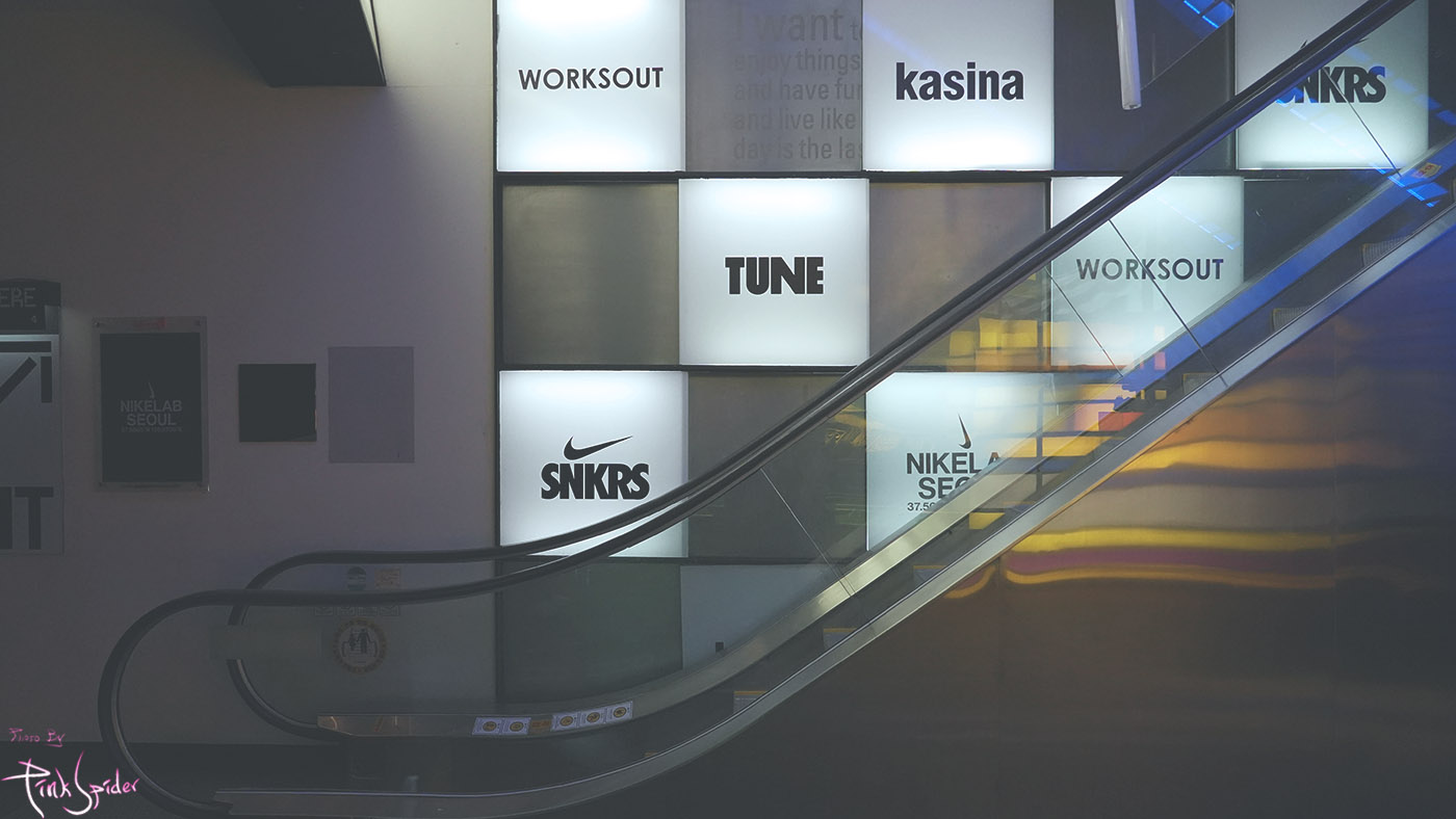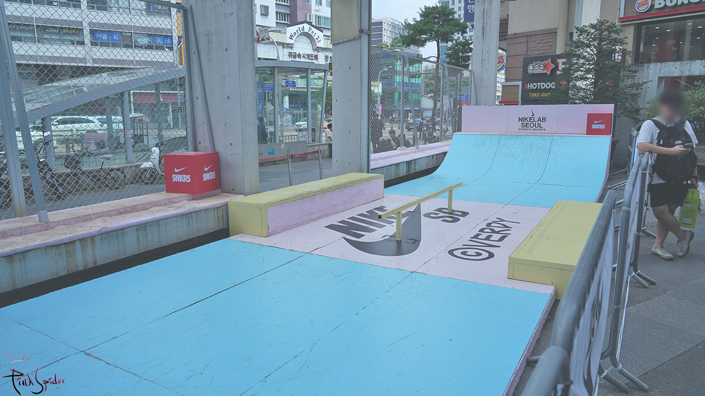 잘 구경하고 들어왔던 입구로 나와서 내려가는 길에 에어맥스 SNDR 스테이지가 길게 뻣어 있다.
