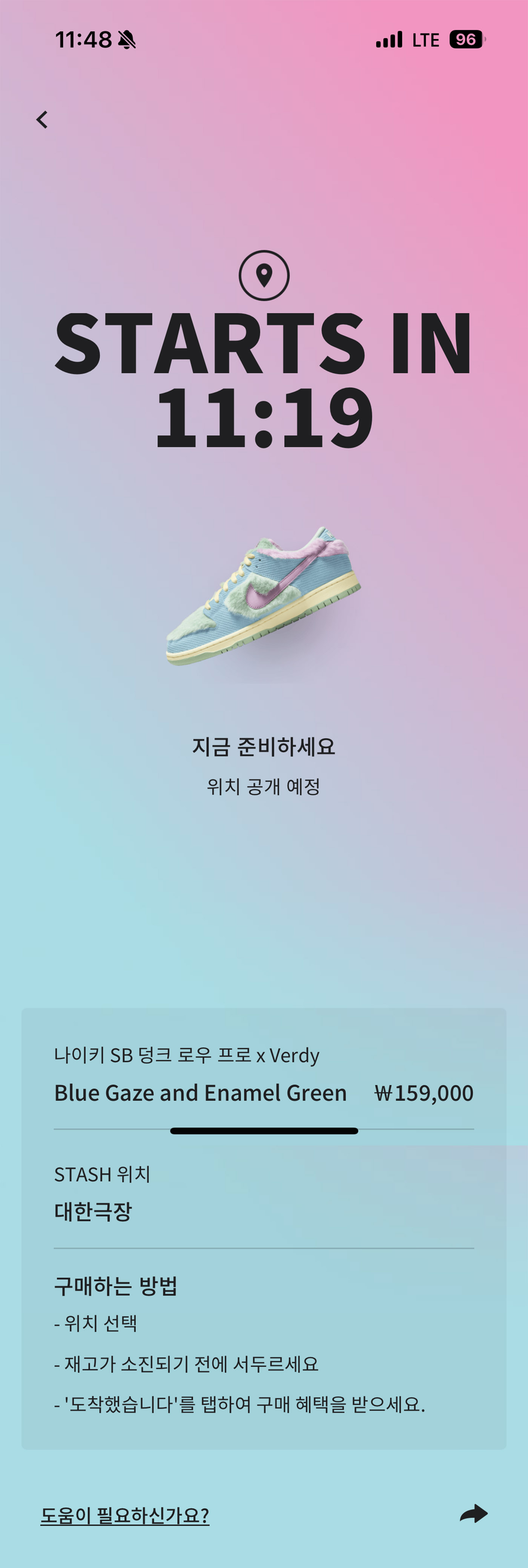 나이키 SNKRS 앱에서 지정된 시간과 장소에 도착하여 인증을 하면