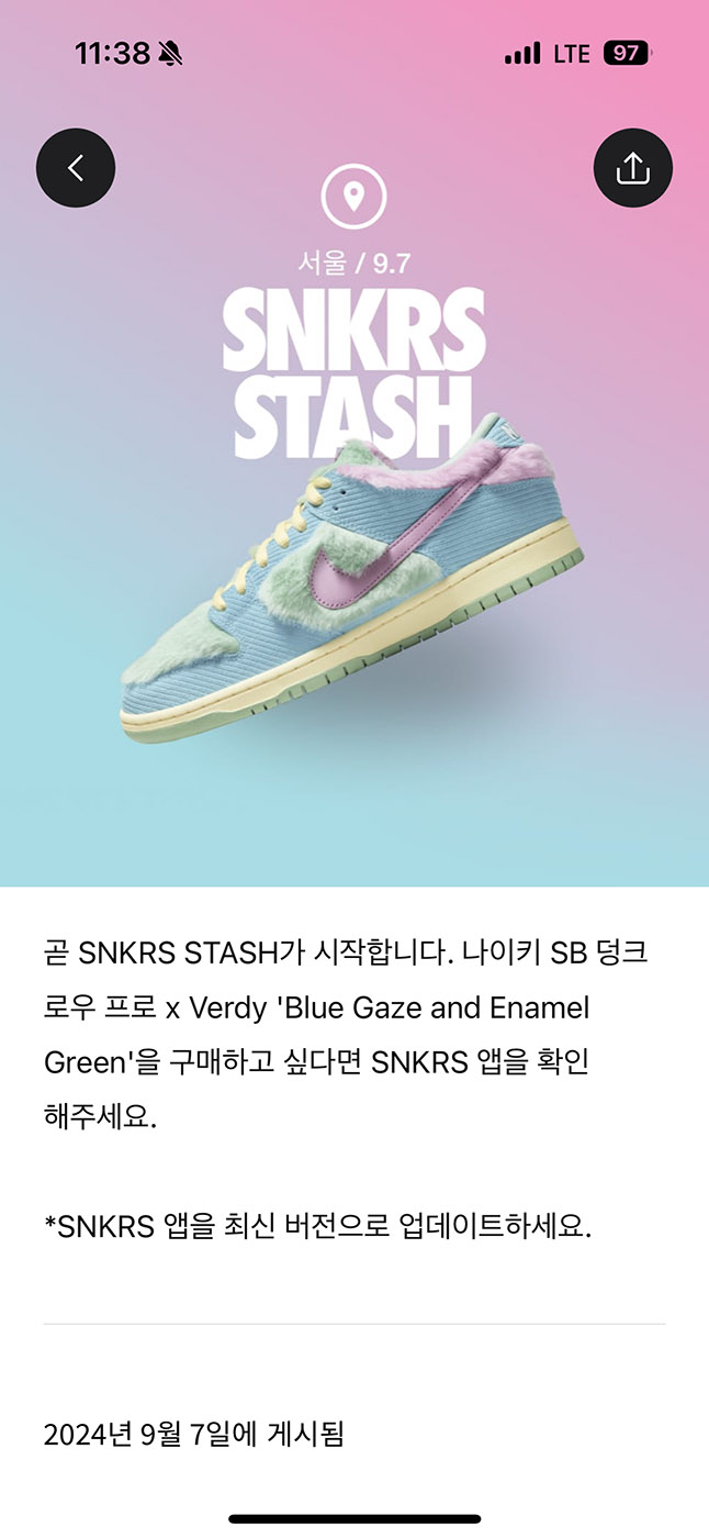 지난 주 토요일에 나이키 SNKRS 앱에서 SNKRS STASH 이벤트가 있었다.