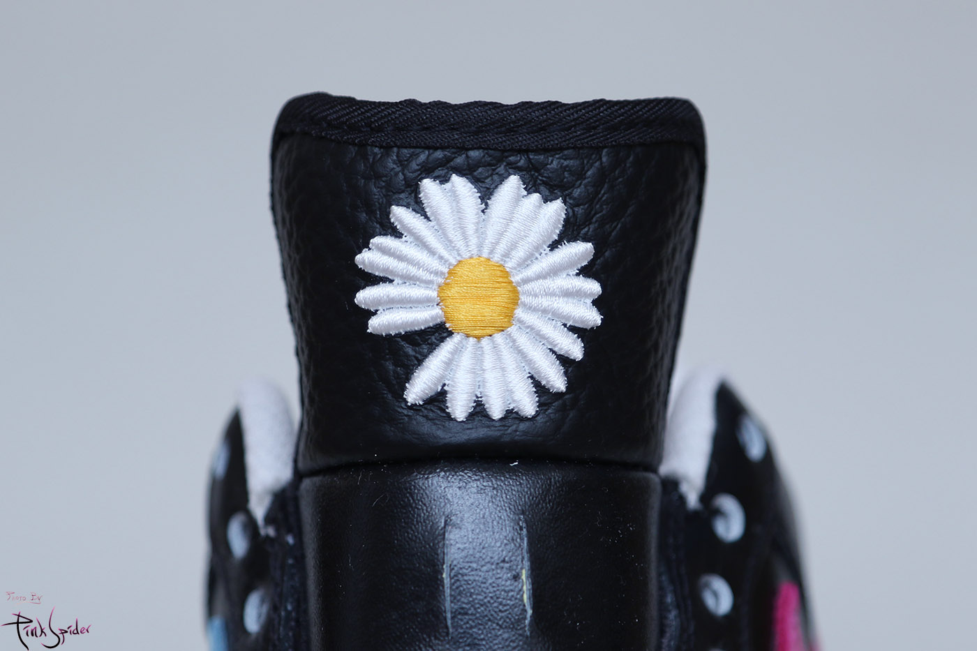 상단에는 피스마이너스원의 상징인 데이지가 자수로 새겨서 붙어 있고