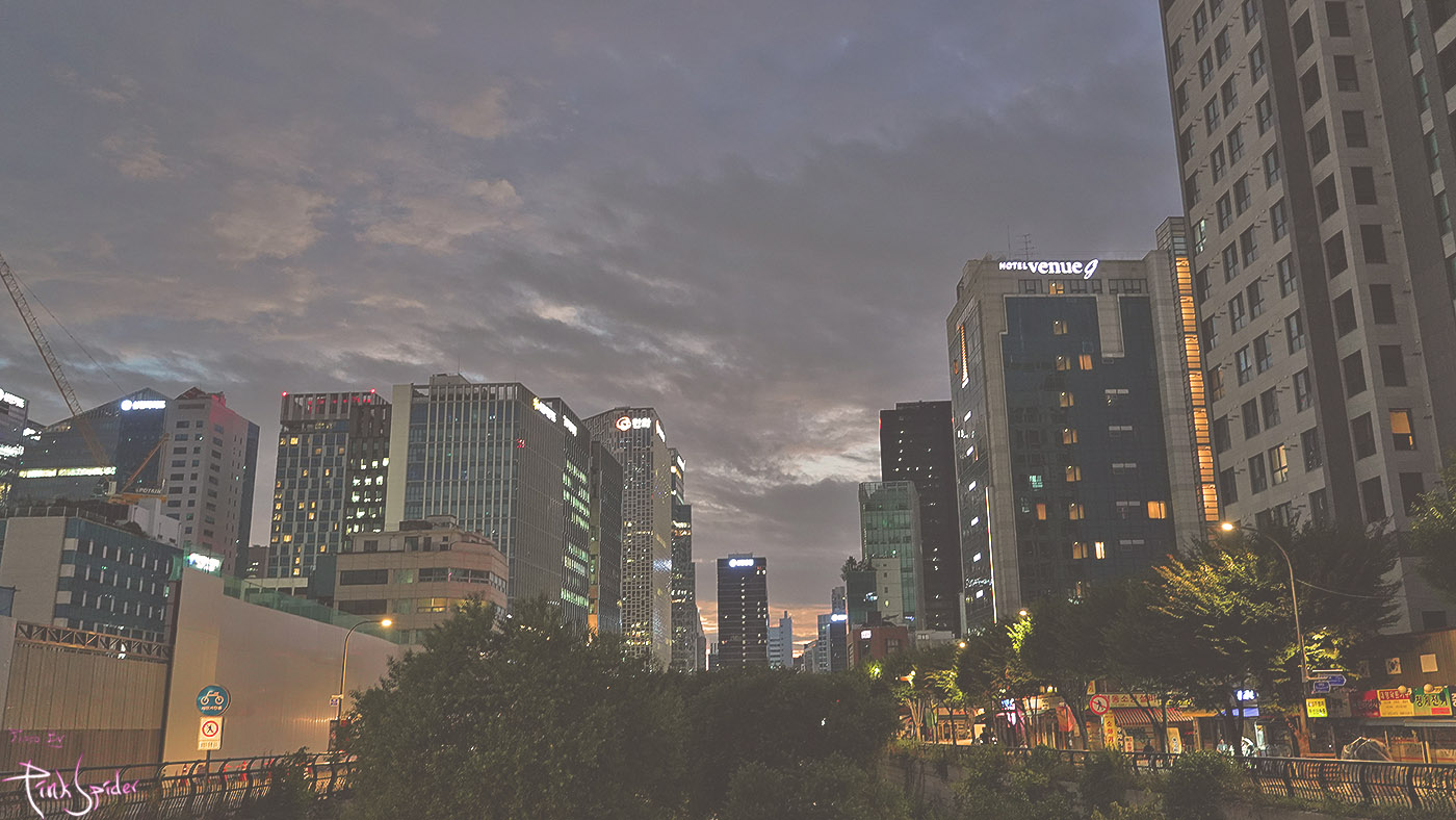 좀 배불러서 청계천 쪽으로 걸어가는데 하늘이 묘하다.
