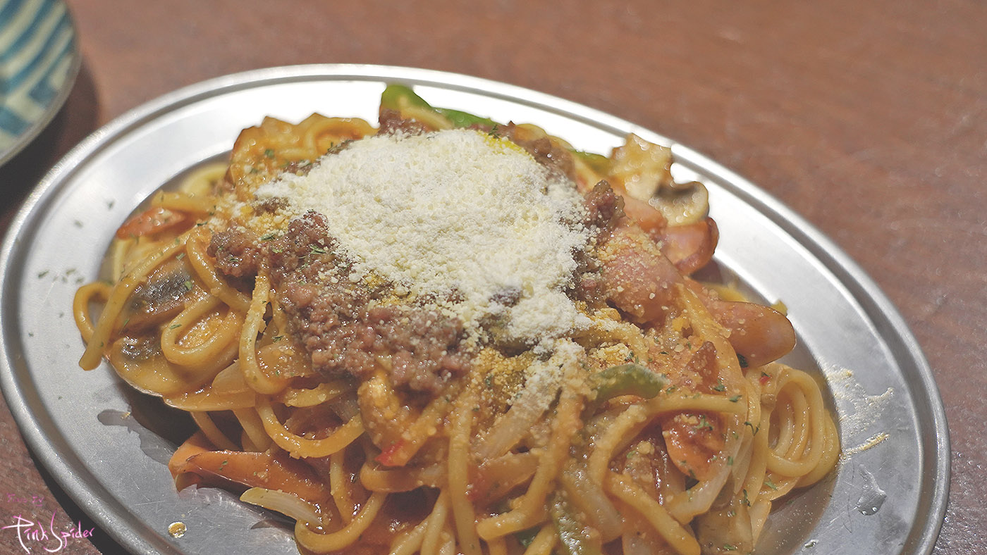 나폴리탄멘은 이 철제 접시에 나오지 않으면 본연의 맛이 안 날 것 같은 선입견이 있다.