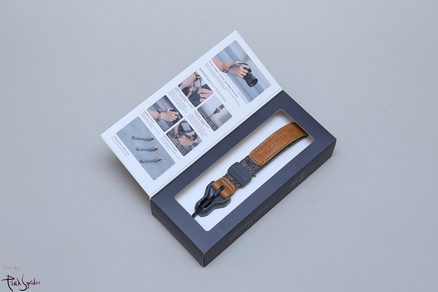 좀 고급스러운 느낌을 주고 카메라 스트랩이라는 인상도 같이 주려고 가죽재질을 꽤 사용한 것 같음