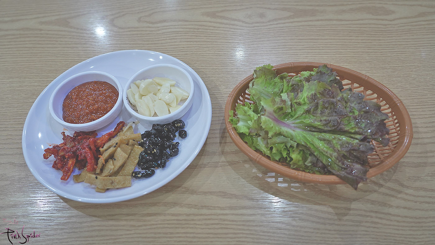 일단 돼지불백 포함 메뉴를 주문하면 상추가 기본으로 나오고 반찬은 따로 퍼왔음