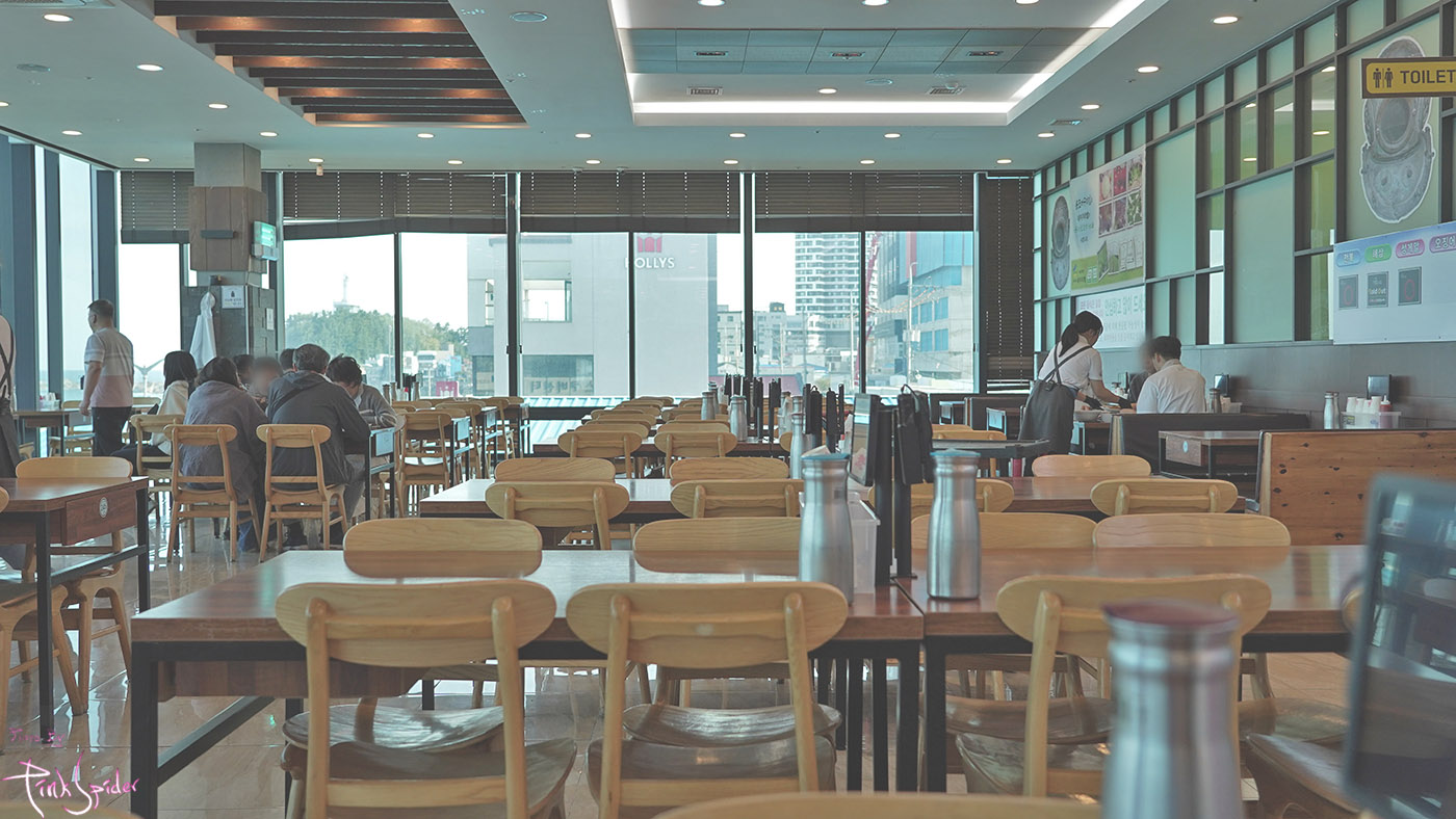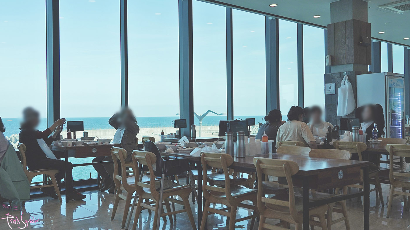 바다가 시원시원하게 보이는 통유리창으로 되어 있고 공간도 굉장히 넓음