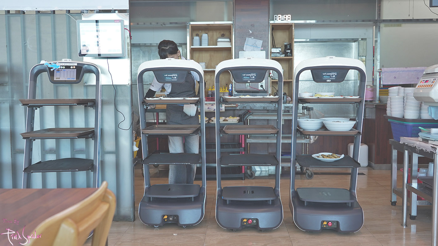 여기도 테이블까지 메뉴를 갖다주는 로봇이 따로 있더라.