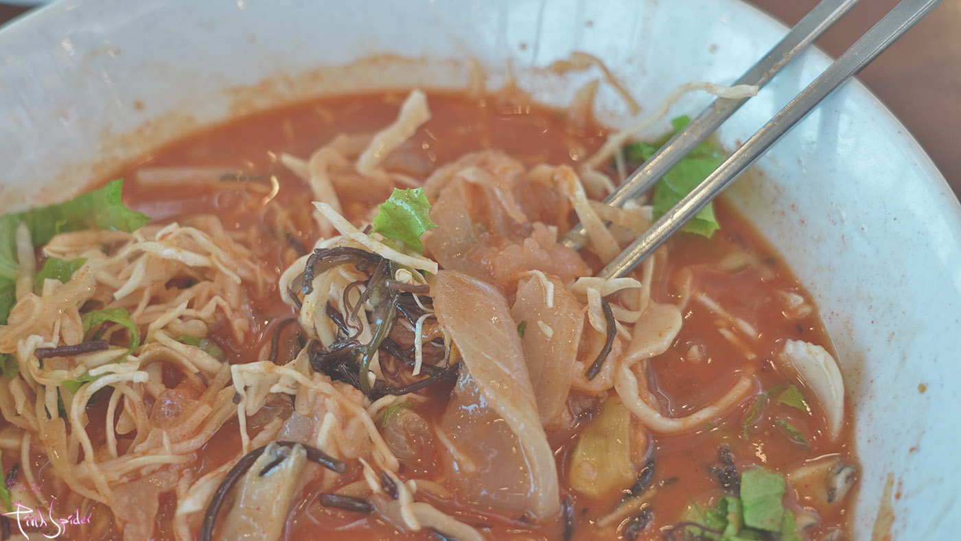먹는 도중에 소면을 넣어주고~