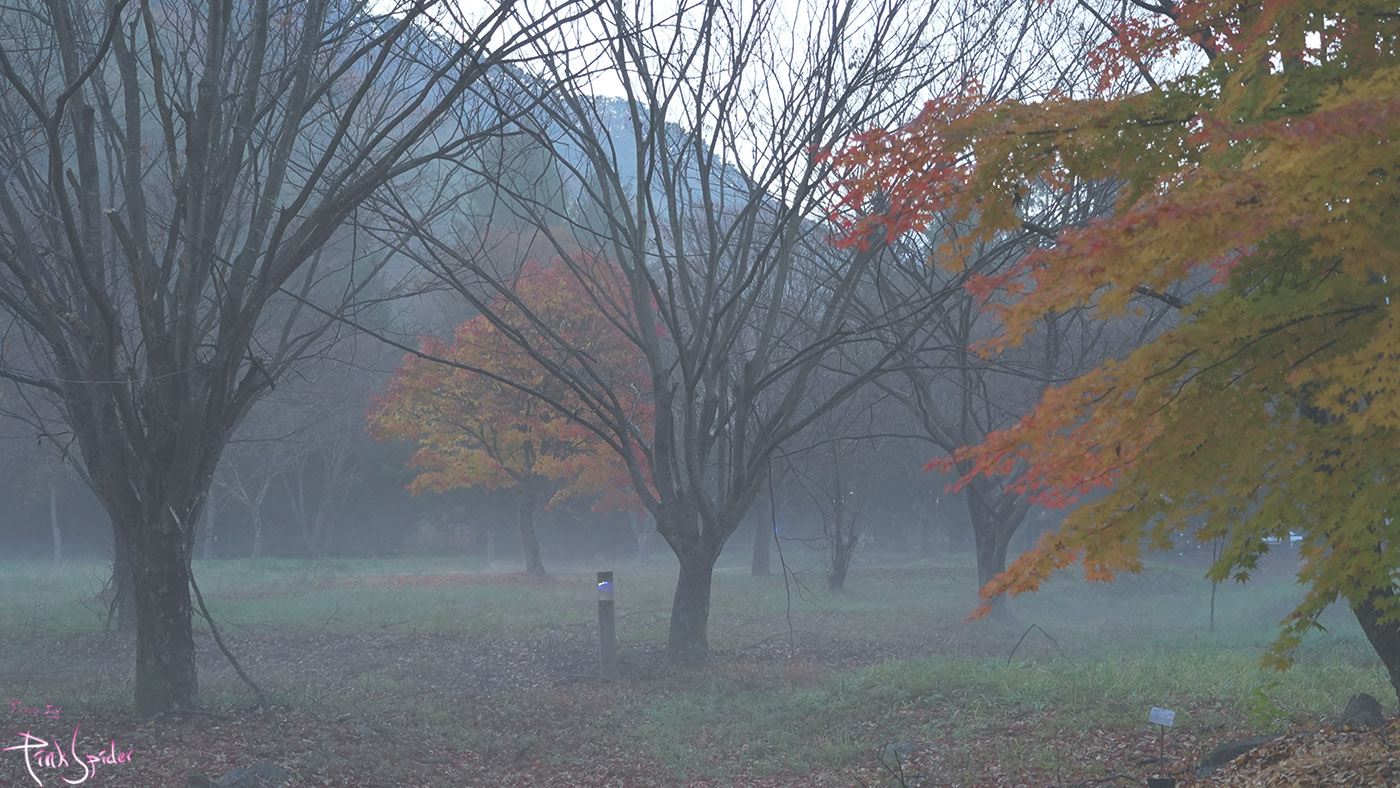 이제 막 해가 뜨기 시작한 시간에 계곡길 근처라서 그런지 안개가 피어 있는게 은근히 운치 있음