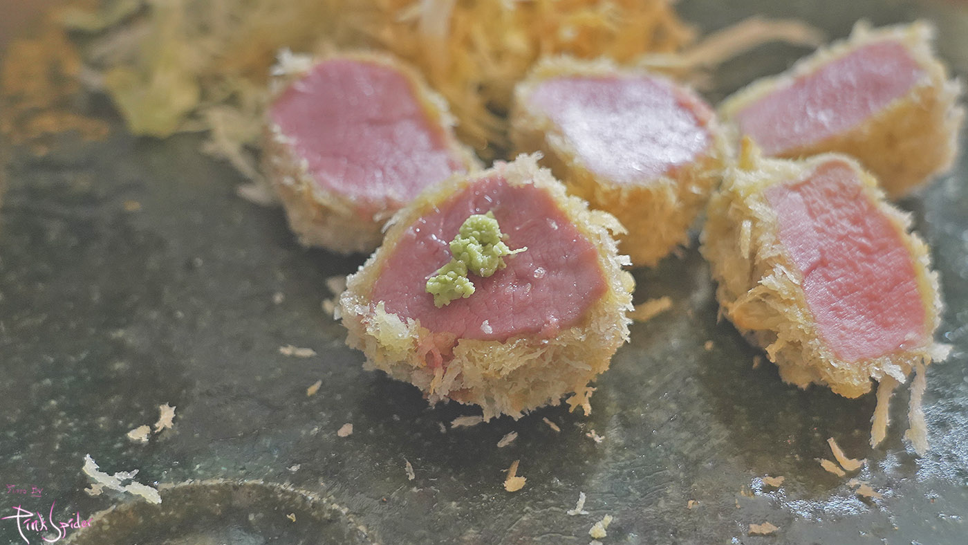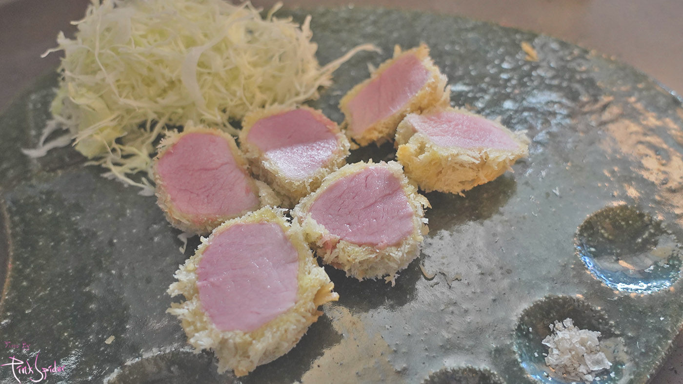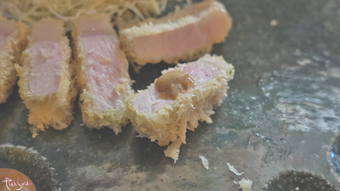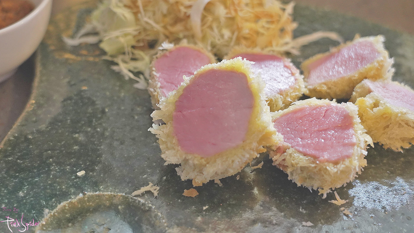 순백의 튀김옷에 수줍게 붉은 안심살의 컬러조합이 상당히 식욕을 불러일으키는 느낌~