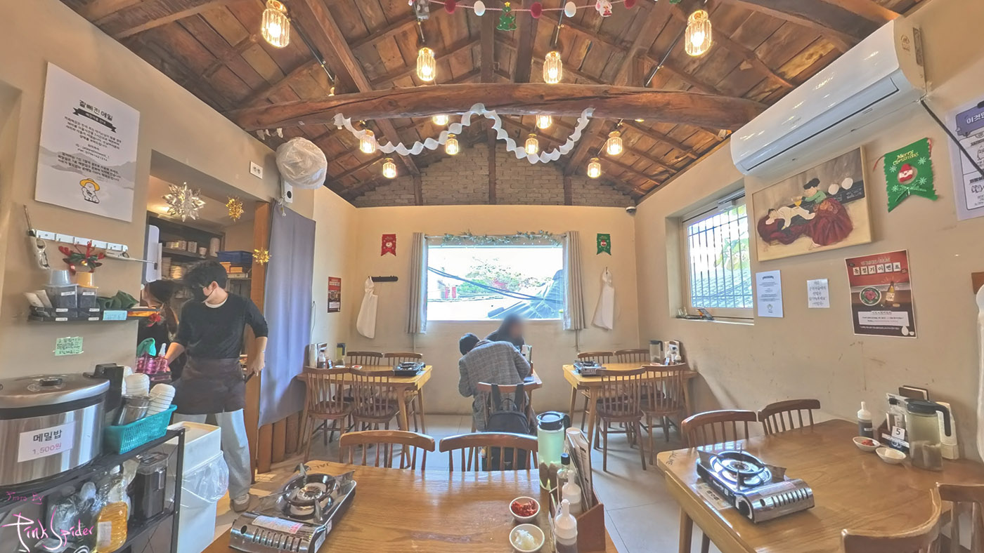 8개의 테이블이 있고 창가쪽에도 6명정도 앉을 수 있는 공간이 있어서 최대 32명 정도는 한번에 들어갈 수 있는 공간