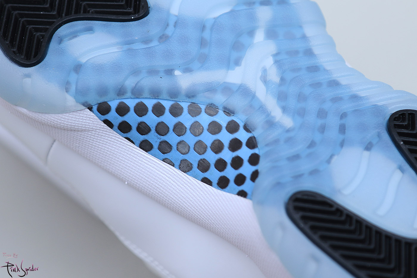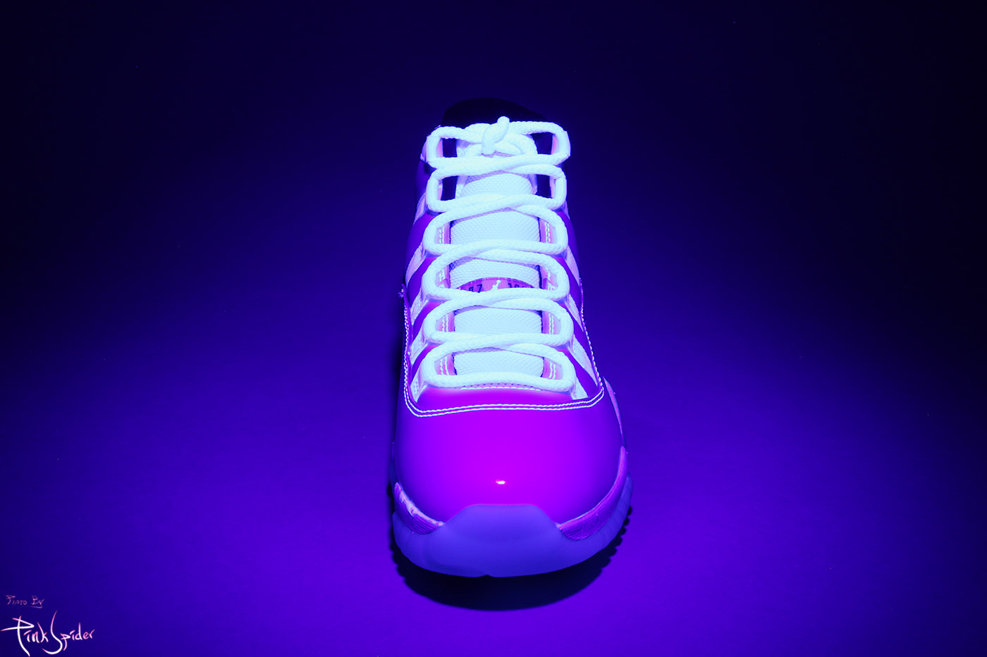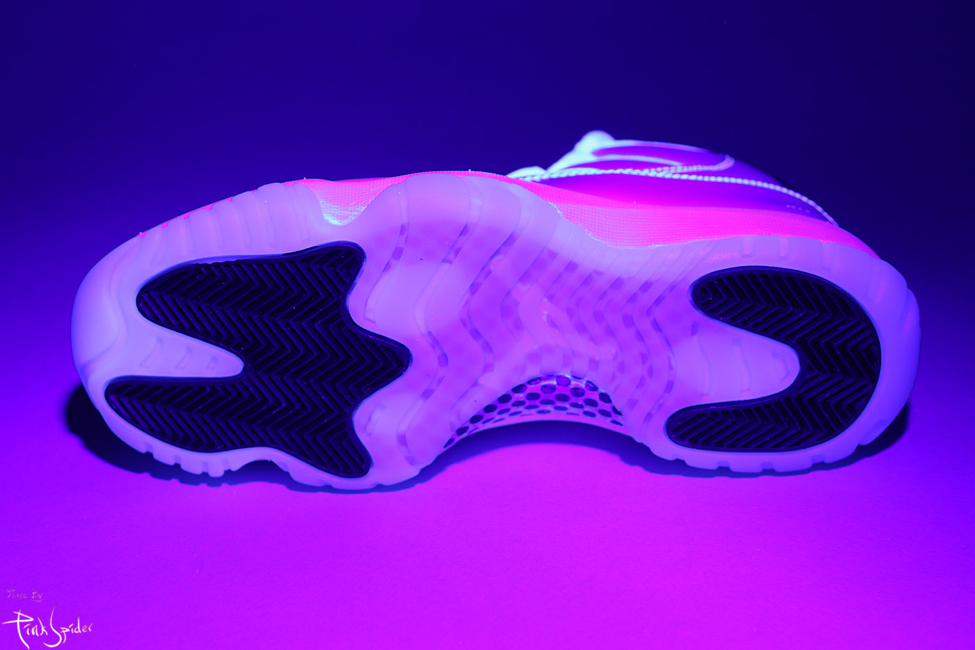 디자인 특성상 UV라이트를 비춰봤을 때 미드솔 라인부터 아래로는 특별히 빛반응 하는 부분은 없다.