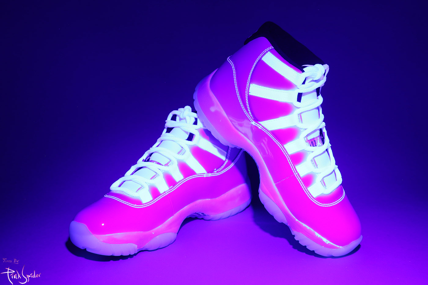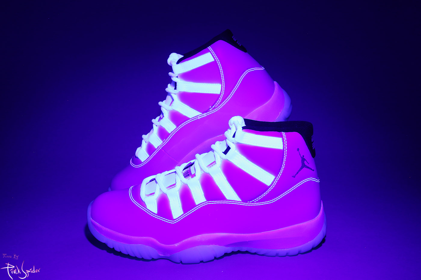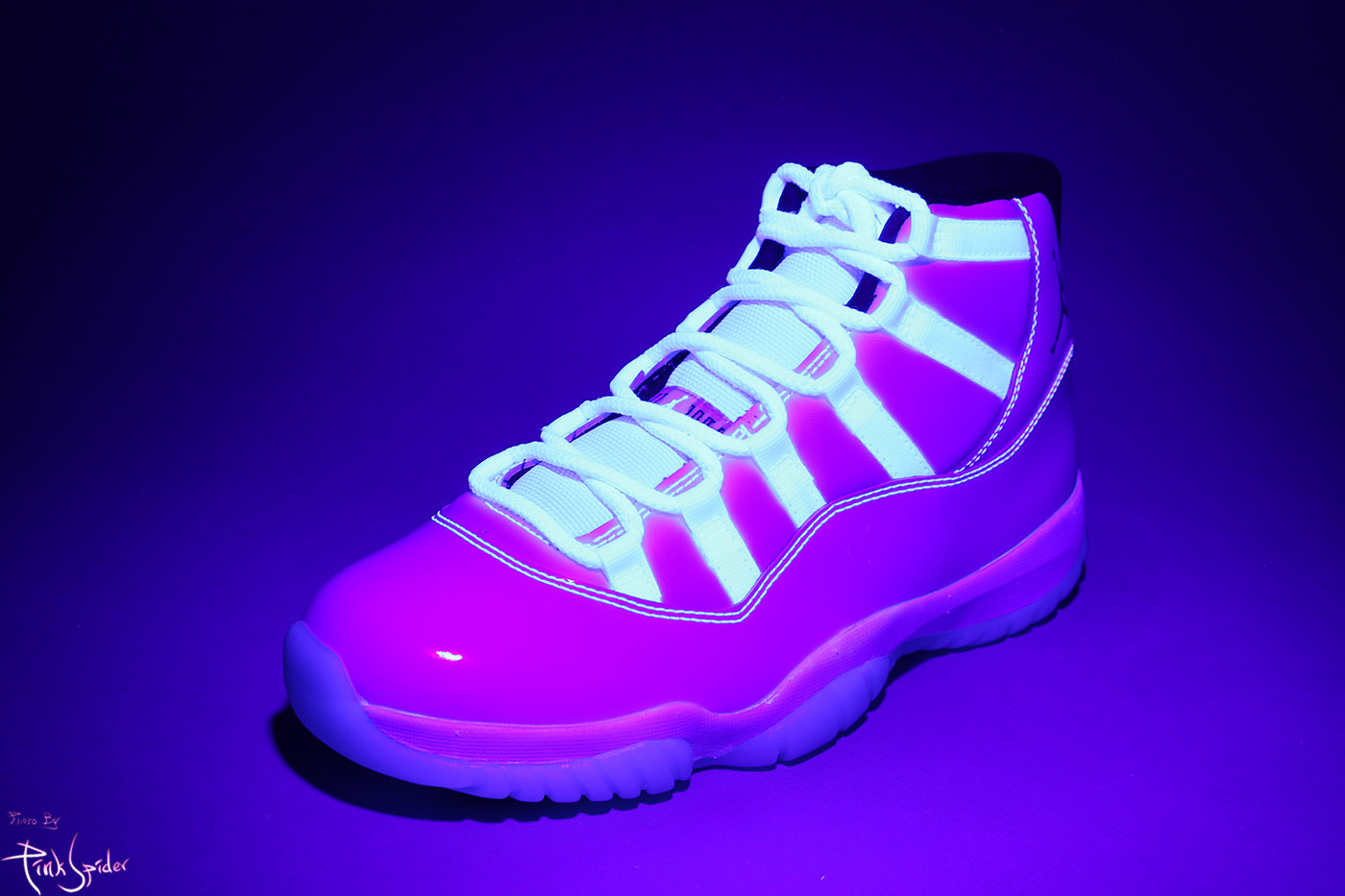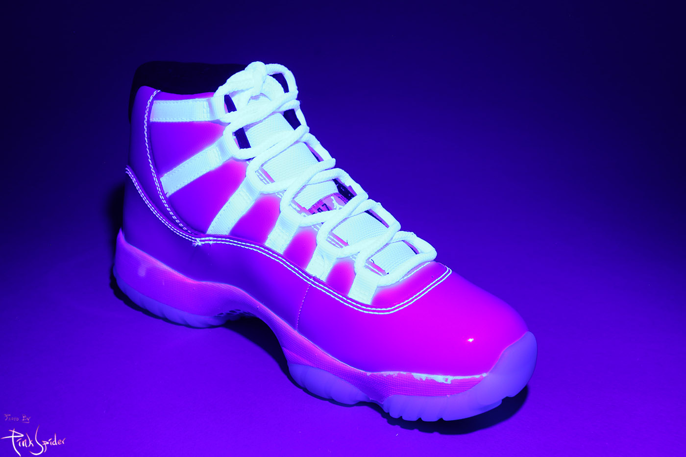 디자인 특성상 UV라이트를 비춰봤을 때 미드솔 라인부터 아래로는 특별히 빛반응 하는 부분은 없다.