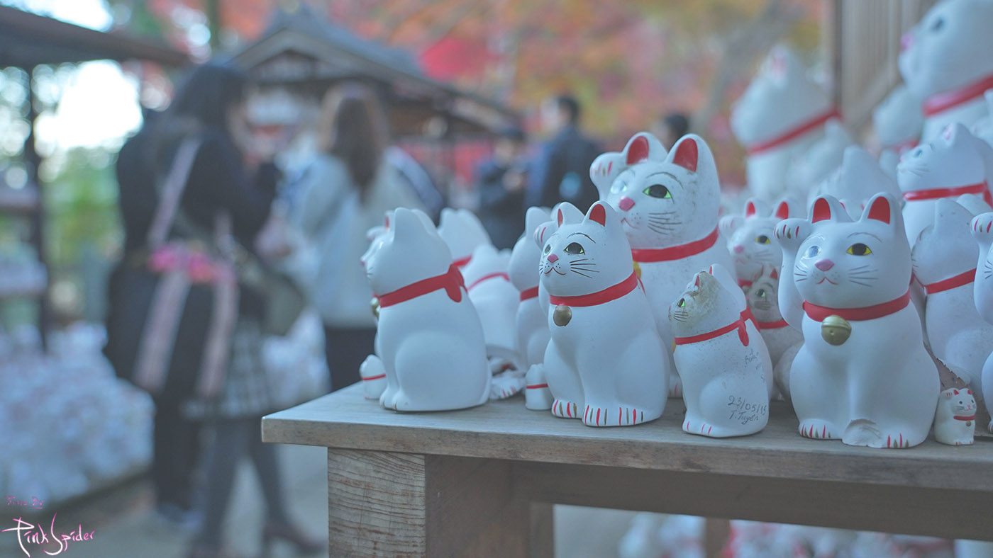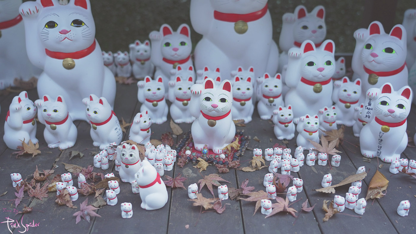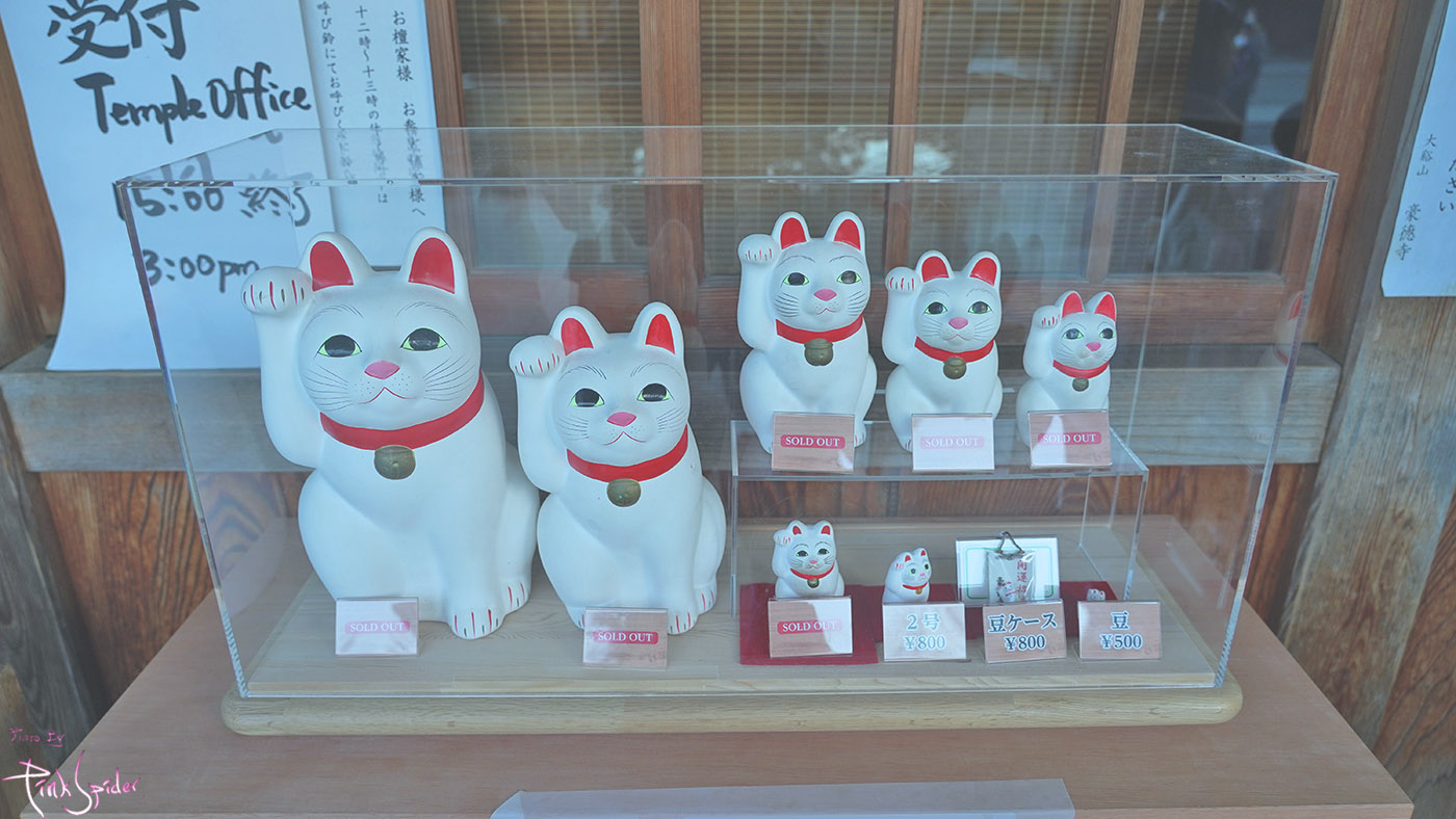 고토쿠지는 종종 여행할 때 볼 수 있는 오른쪽 손을 들고 있는 고양이인 마네키네코(招き猫)의 발상지라고 한다.