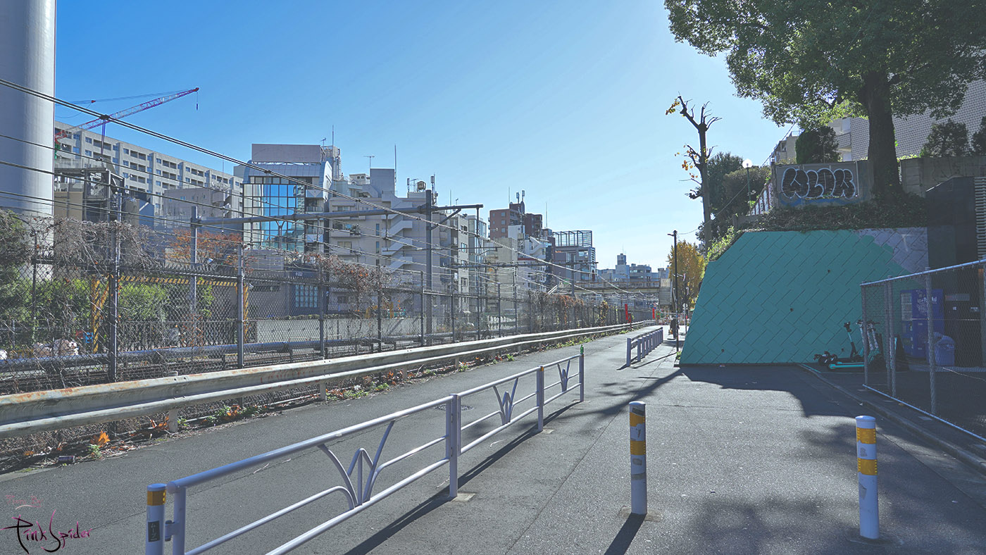 JR라인 지나가는 다리 아래를 건너서