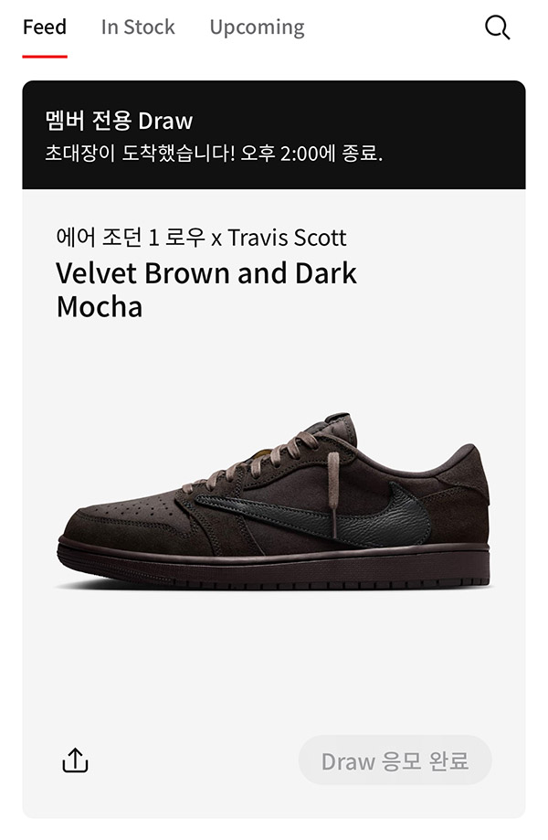 응? 12시 되자마자 앱에서 조던1 로우 스캇 벨벳 브라운이 떠있는게 아니겠음?