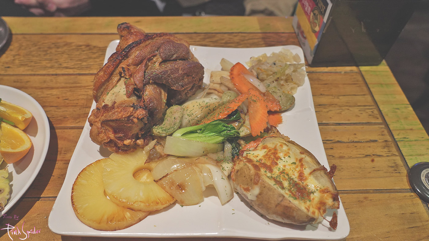 구운 파인애플에 소세지, 야채 그리고 치즈를 얹은 감자까지 나와서 꽤나 푸짐한 구성~