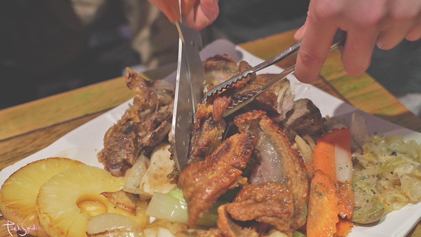 슈바이네학세은 훈제된 고기라서 훈제라는 것과 조화를 이루면서 우리내 족발과 비슷한 느낌이었고