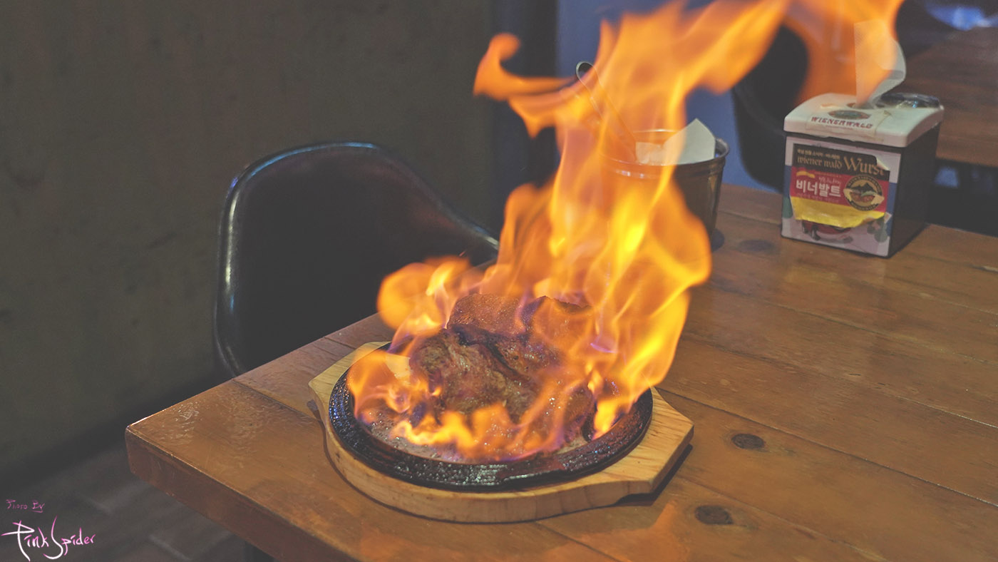 겉을 좀 더 바삭하게 해주는 느낌으로 기름을 두루고 불을 붙혀 준다~
