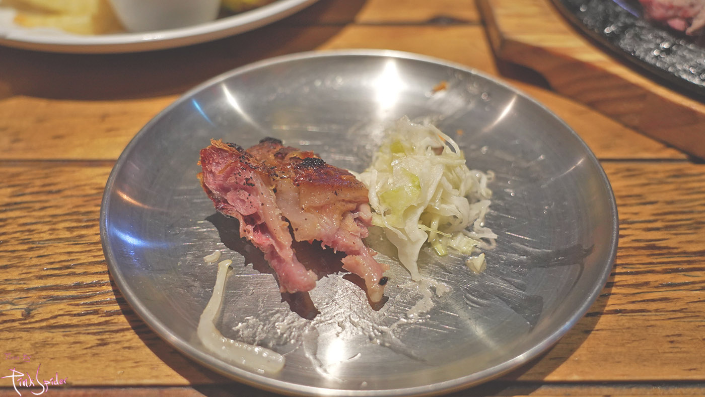 그래서 겉은 바삭하게 보이고 속은 훈제를 해서 분홍빛을 띠게 되는 것 같고