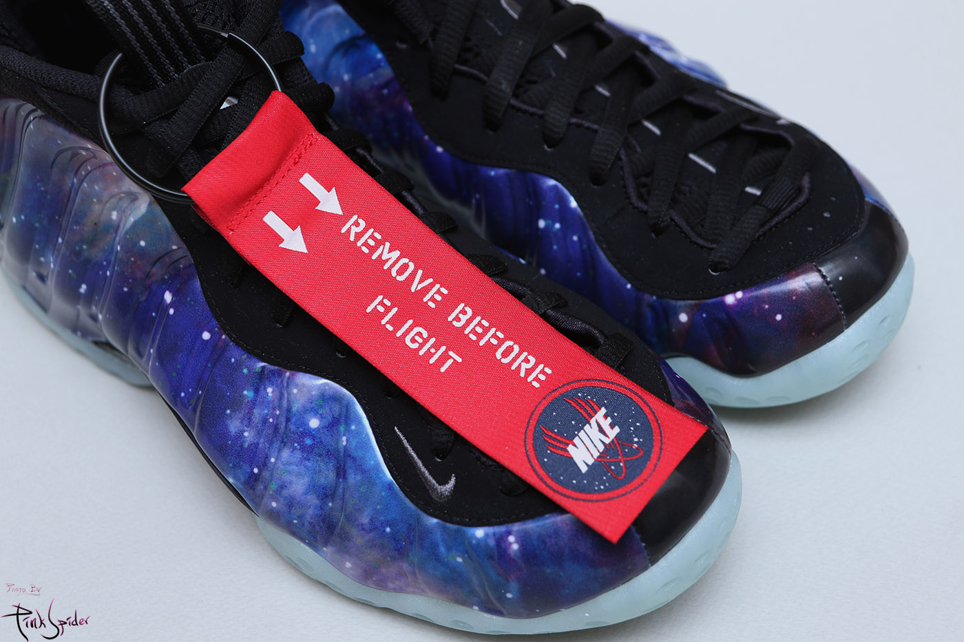 오른쪽에는 우주복에 사용할 것 같은 택이 붙어 있고 나이키 택이 붙어 있다.