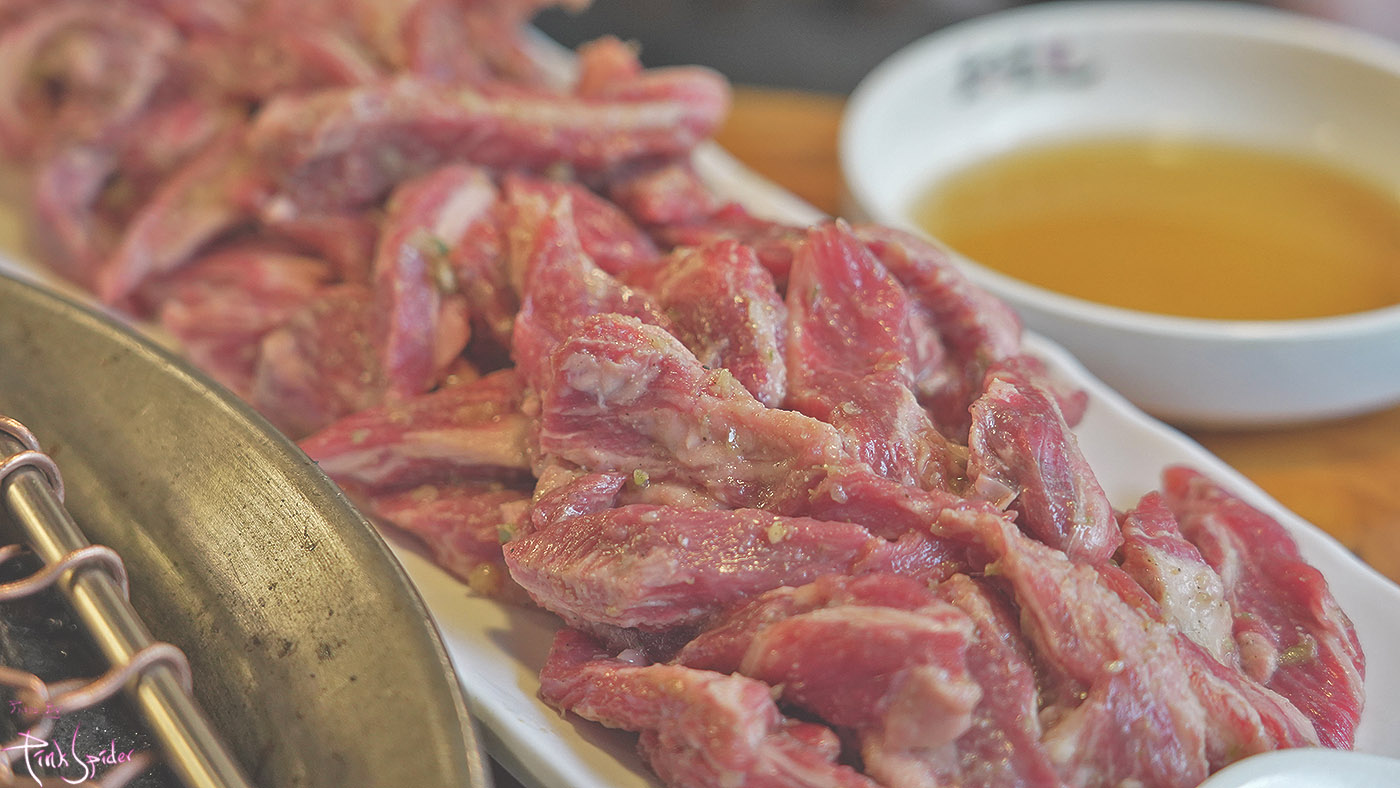 테이블마다 구비되어 있는 소금과 곁들여서 먹으니 역시나 소갈비살은 소금 조합이 아닌가 싶다.