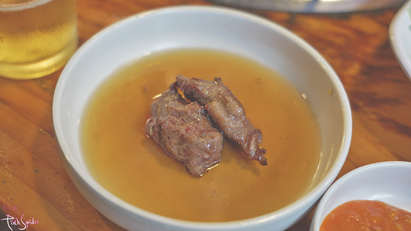 잘 익은 소갈비살을 간장소스에 찍어서 먹어봤는데 역시나 맛있다.