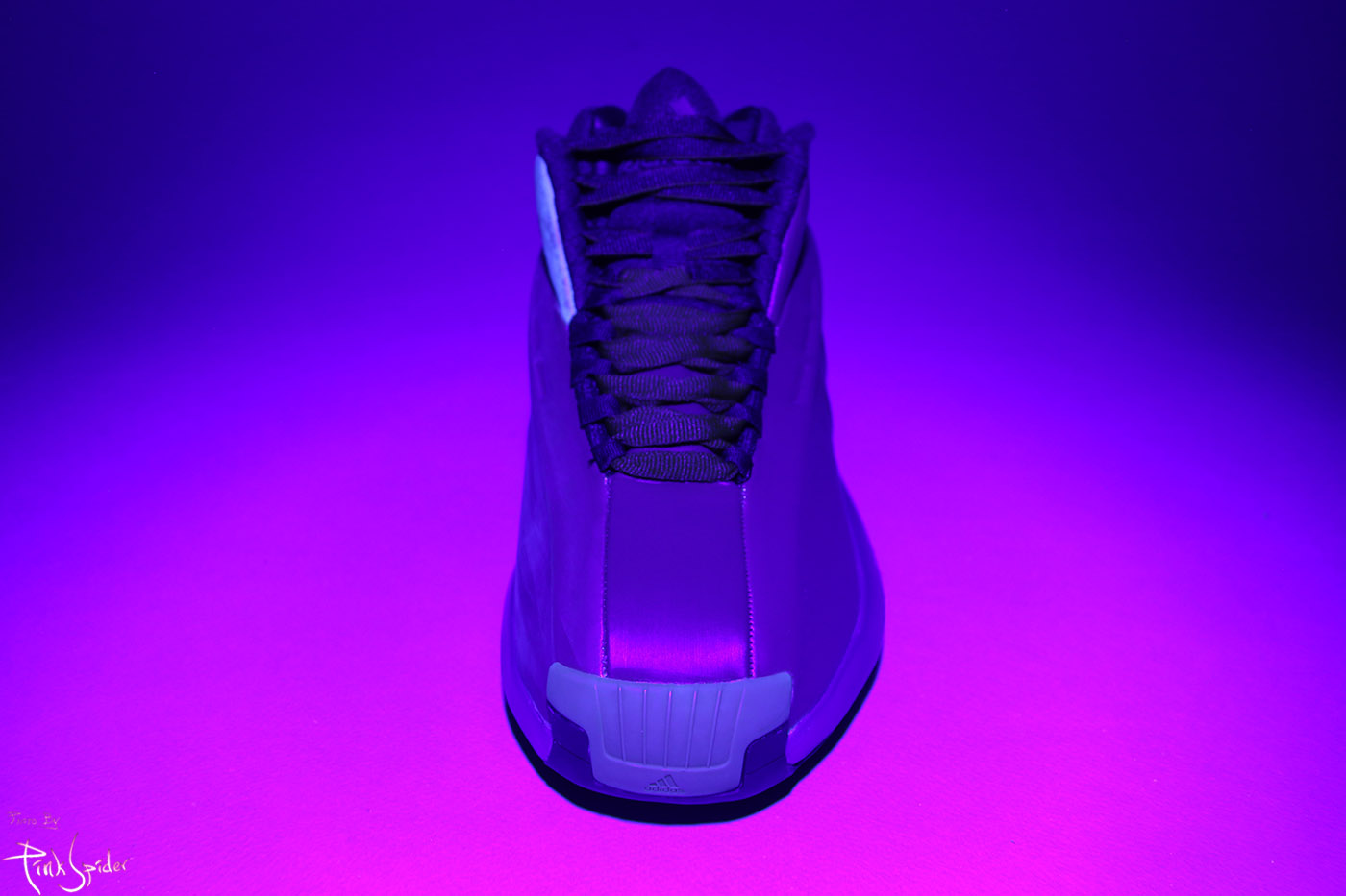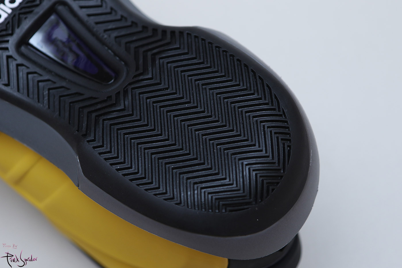 투명 디테일은 짙은 보라색 컬러이고 하단에는 아이다스 로고가 음각으로 새겨져 있는데