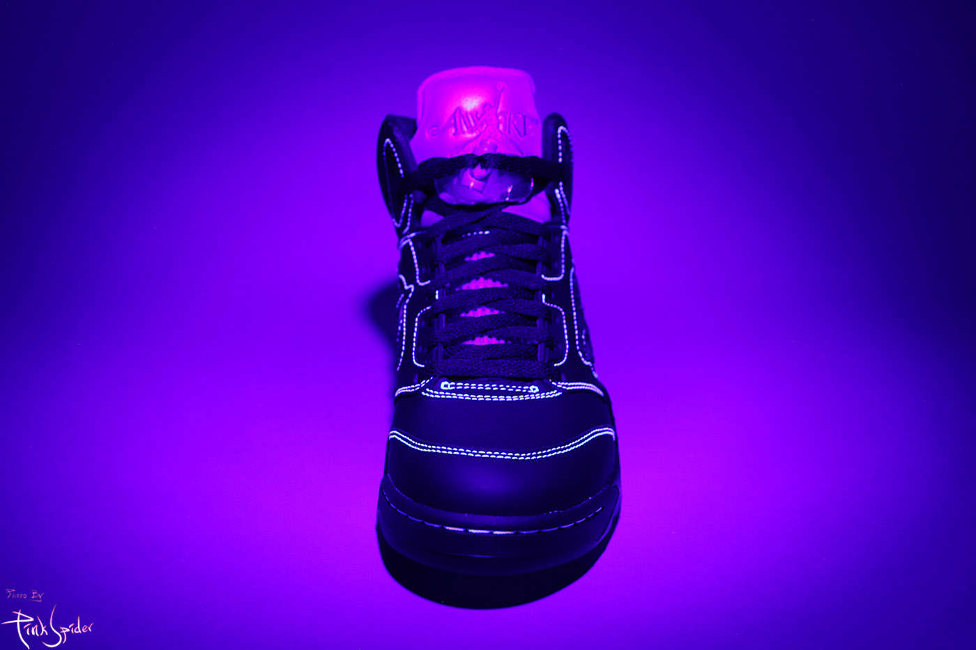 화이트 스티치 라인에는 전부 빛반응을 하고 혀 안쪽에 조던패치도 빛반응을 한다.