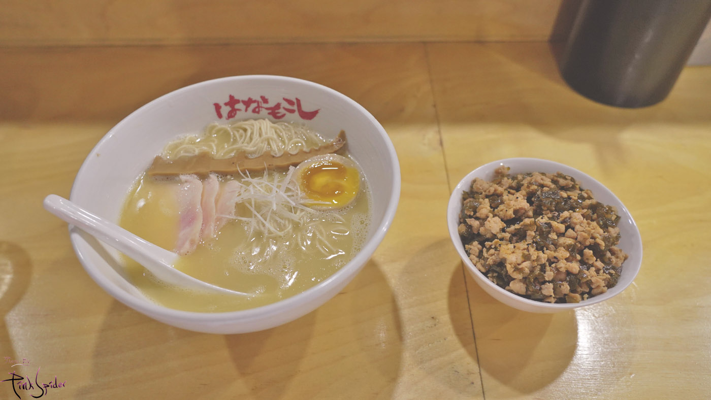 라멘 그릇에 하나모코시라고 적혀 있는 걸 보면 이전 가게의 역사를 그대로 이어가는 느낌을 주는 것도 좋고