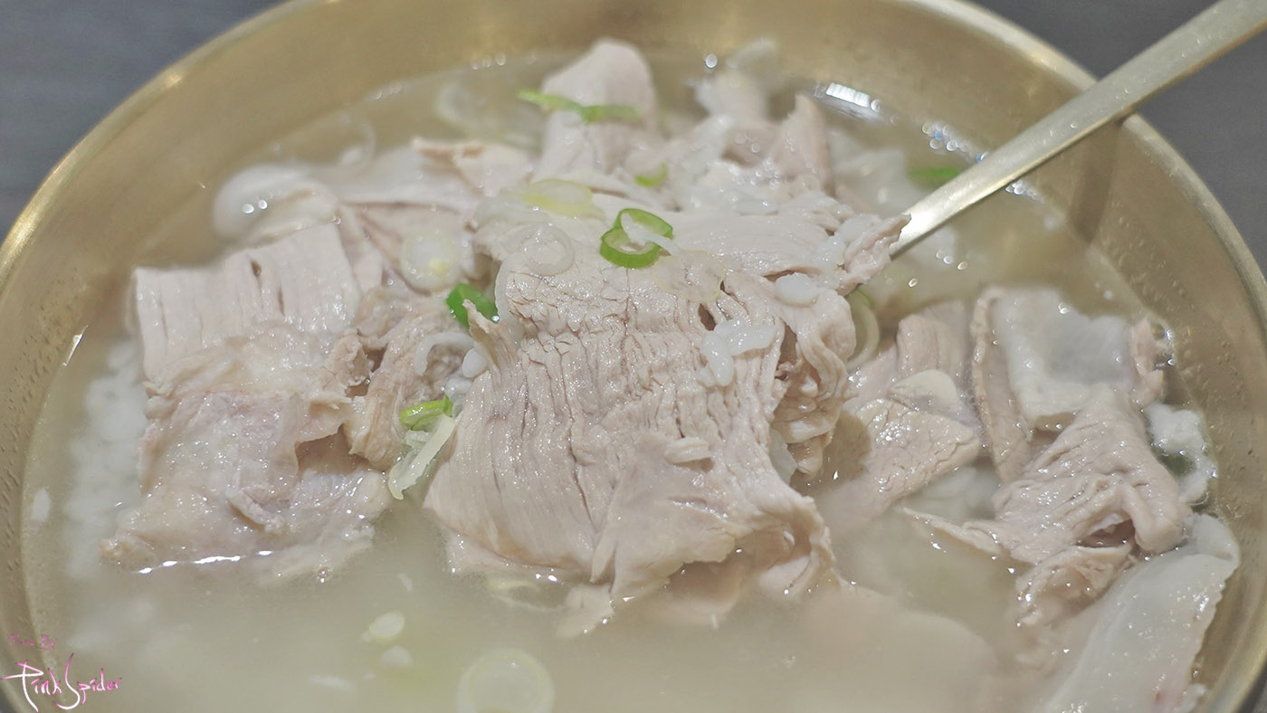 부드러운 돼지곰탕의 고기와는 다르게 살짝 단단하면서도 탱글탱글한 식감에