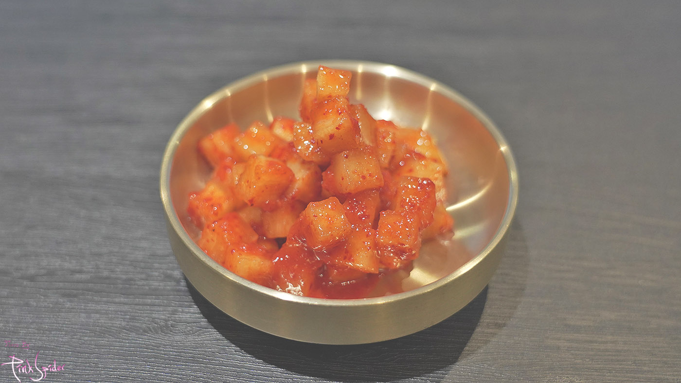 더무 단단하지도 않고 무르지도 않은 식감에 무 특유의 쌉살한 맛과 감칠맛에 단맛이 좀 더 느껴지는 맛이었는데